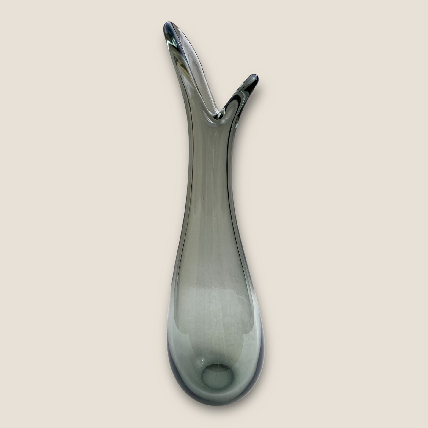 Holmegaard, Sjælden stor næbvase, Smoke, 54cm høj, 17cm bred, Design Per Lütken *Med lidt luftbobler i glasset og minimale brugsspor*