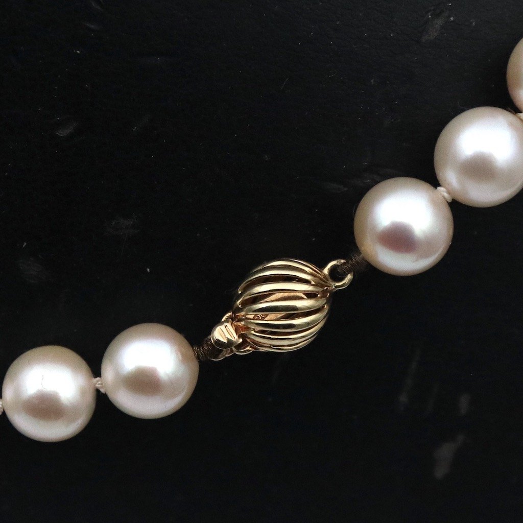Akoya Perlekæde med lås i 18k guld.
