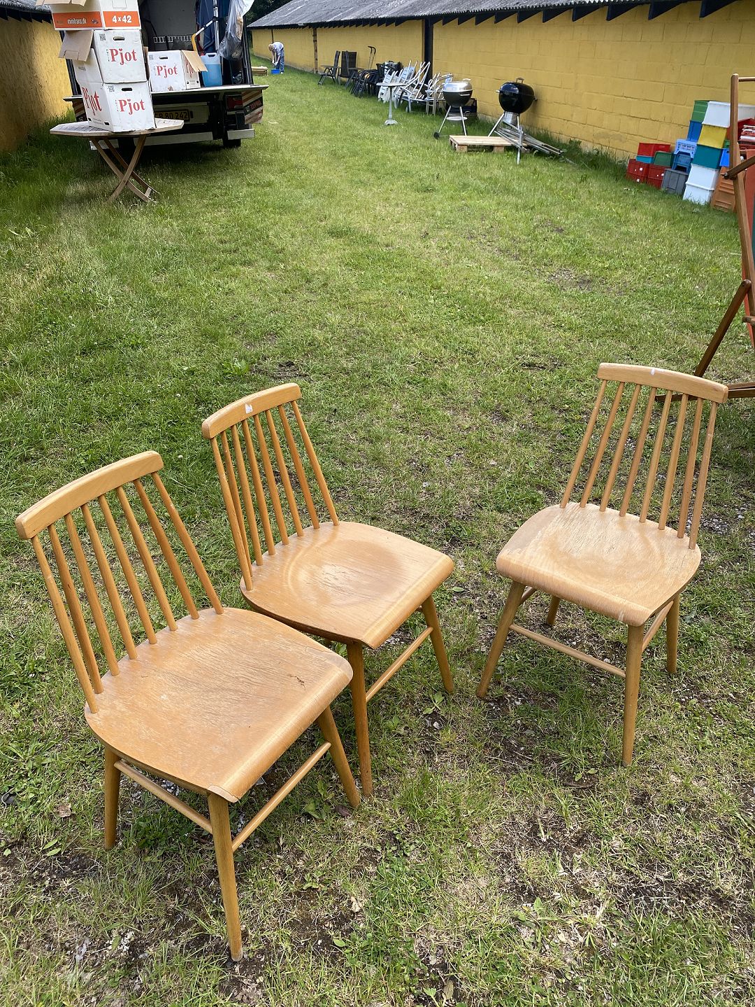Tre pindestole i fineret Bøgetræ. Fremtår med brugsspor.