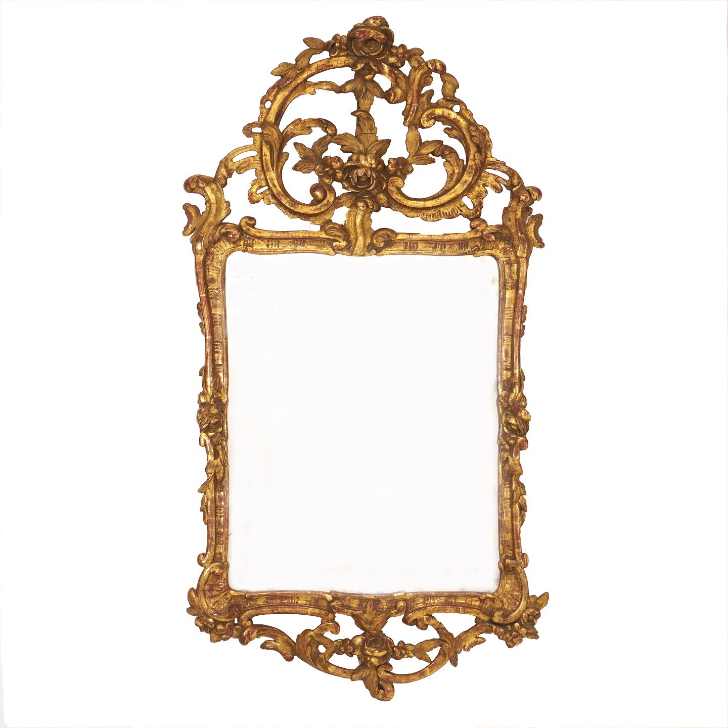 Forgyldt rokoko kaminspejl. Slesvig-Holsten ca. år 1760. H: 120cm. B: 65cm