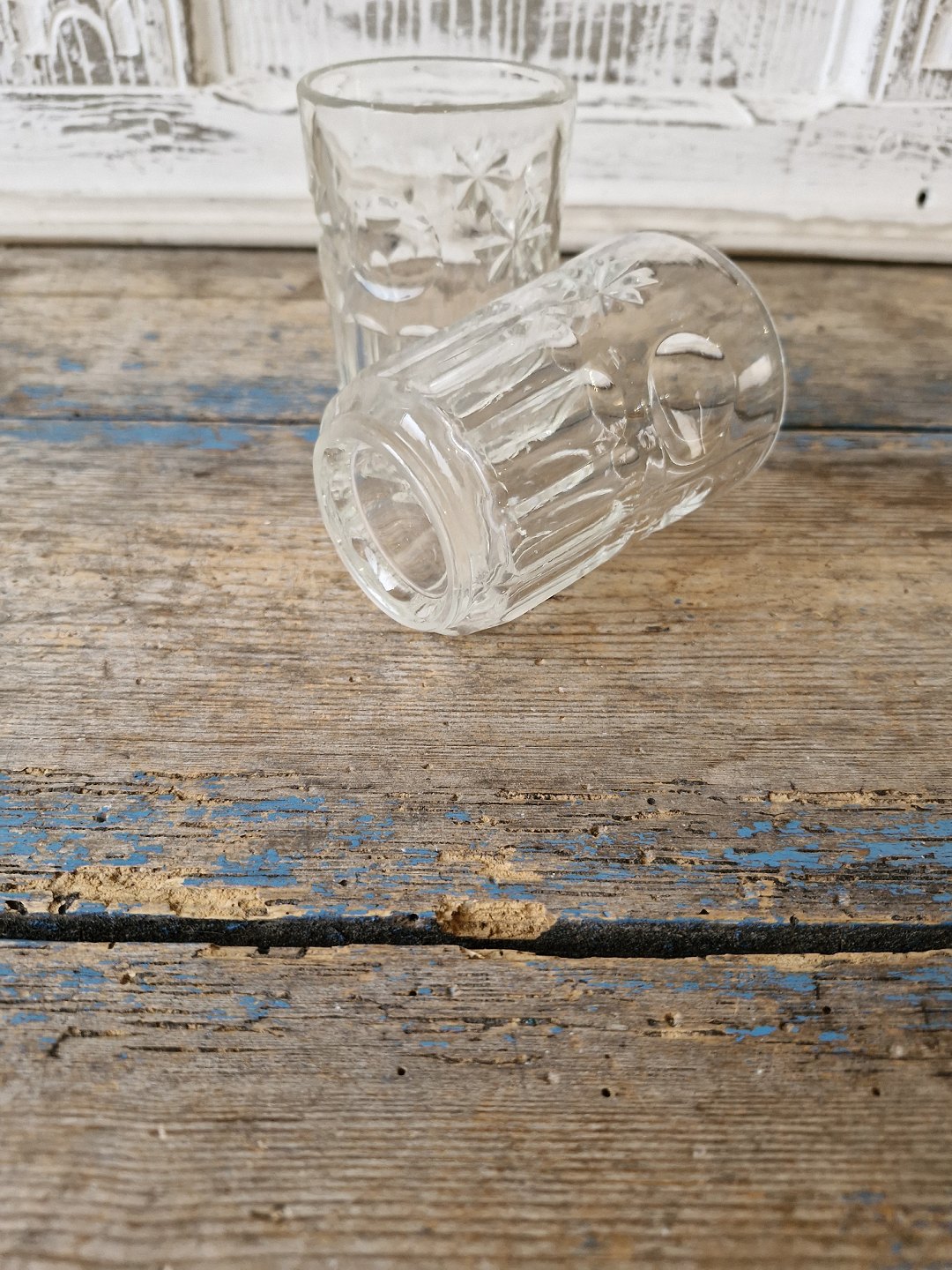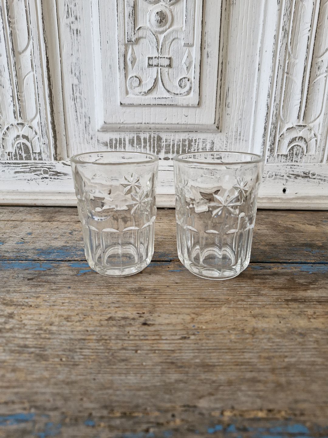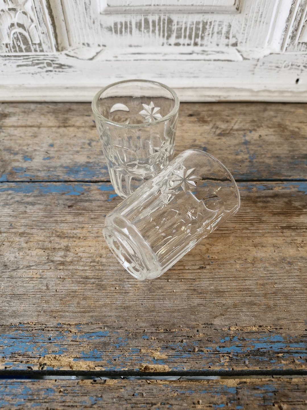 Vandglas dekoreret med måne og stjerner udført i presset glas