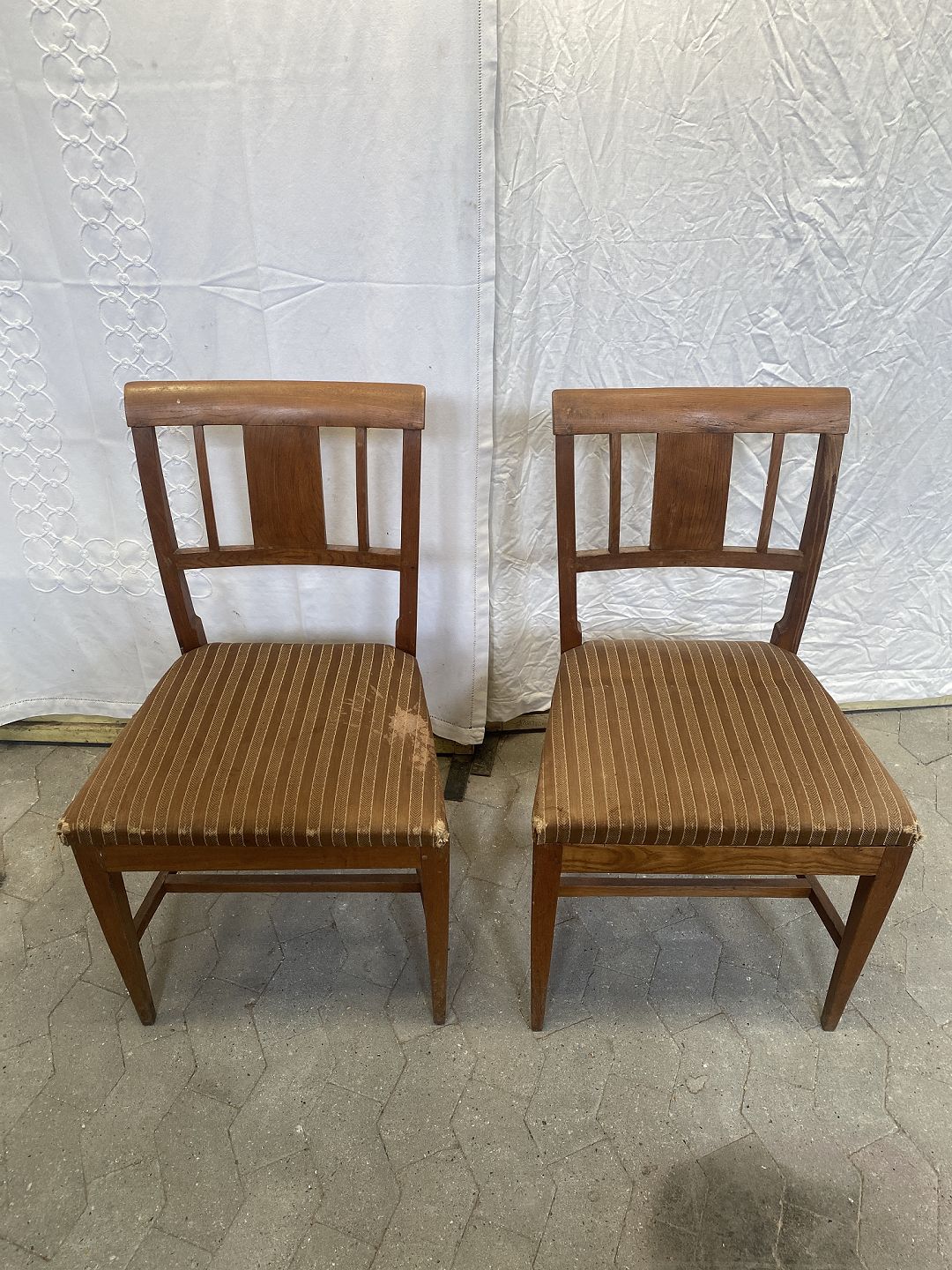 2 stole i mahogni fremstår med brugsspor specielt i sæde