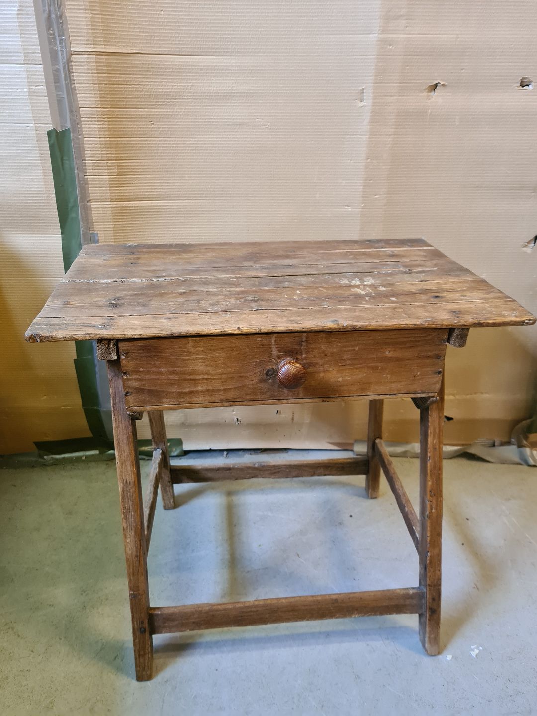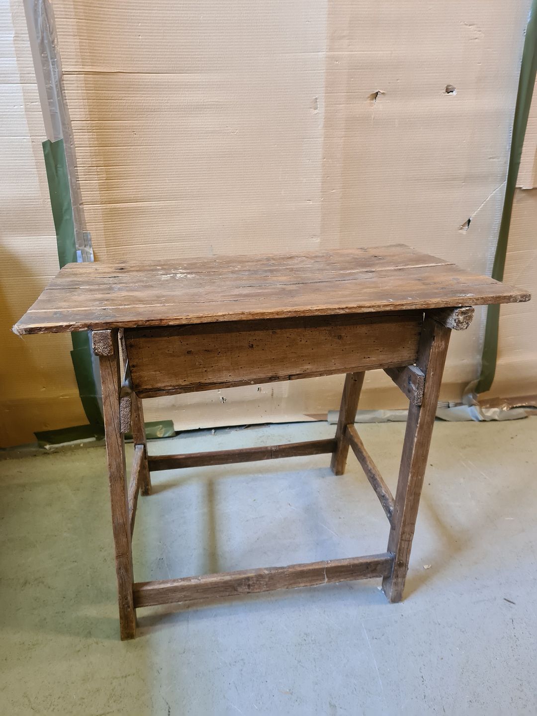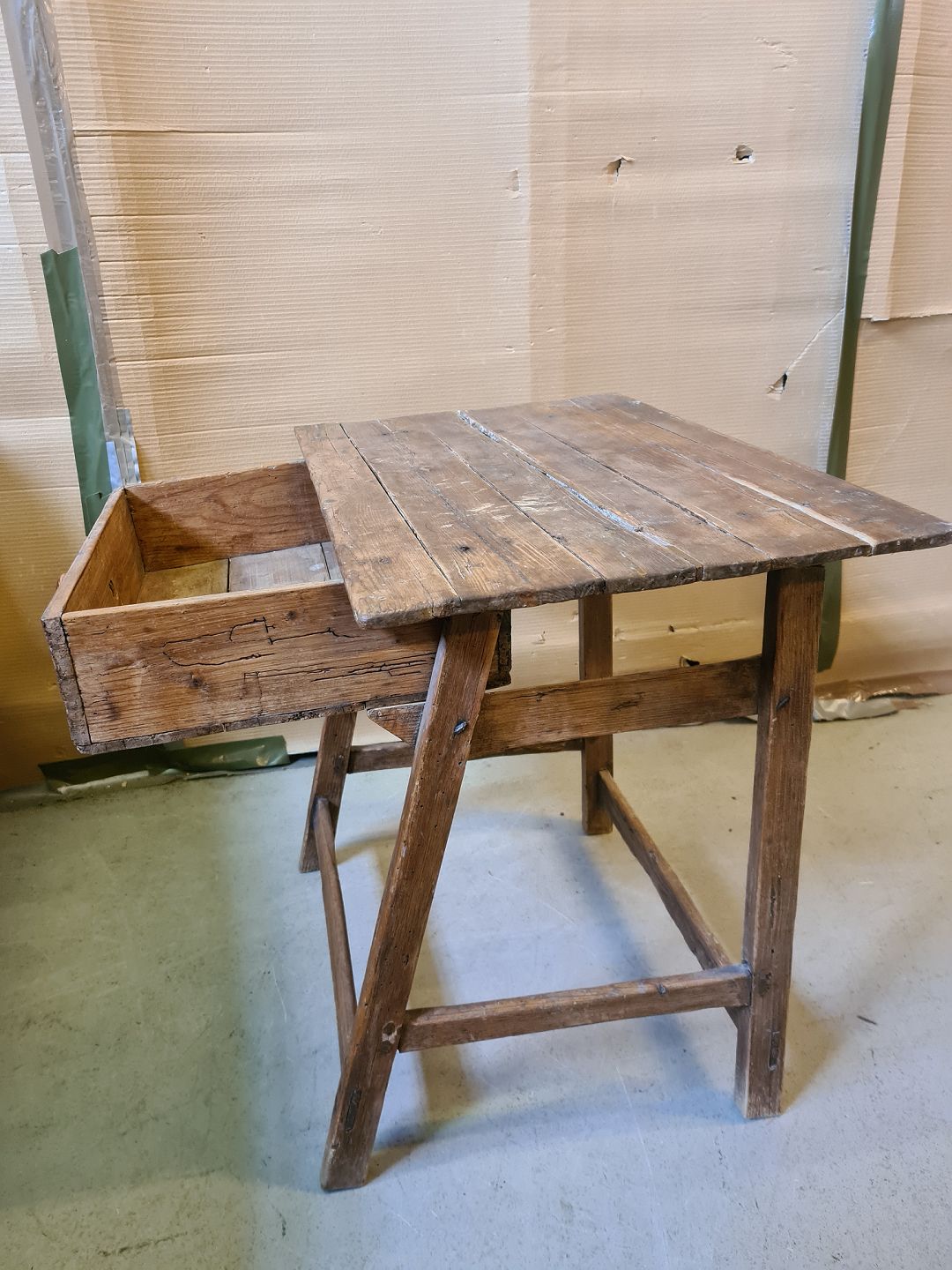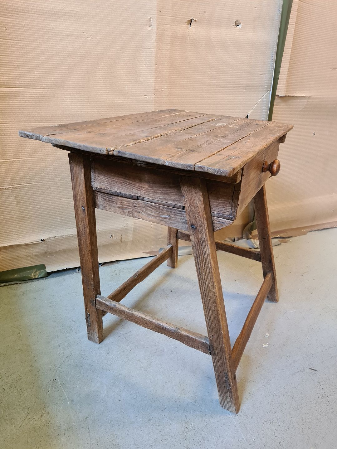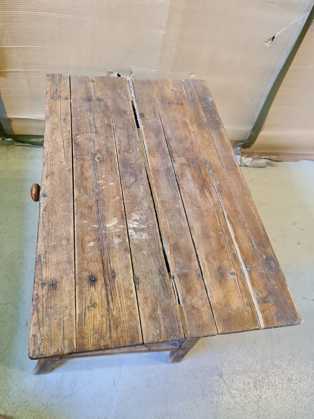 Bord med skuffe i massivt fyrretræ, fra 1880erne.