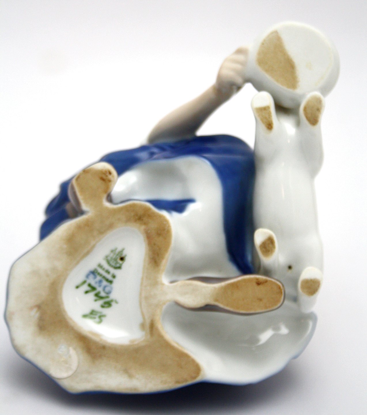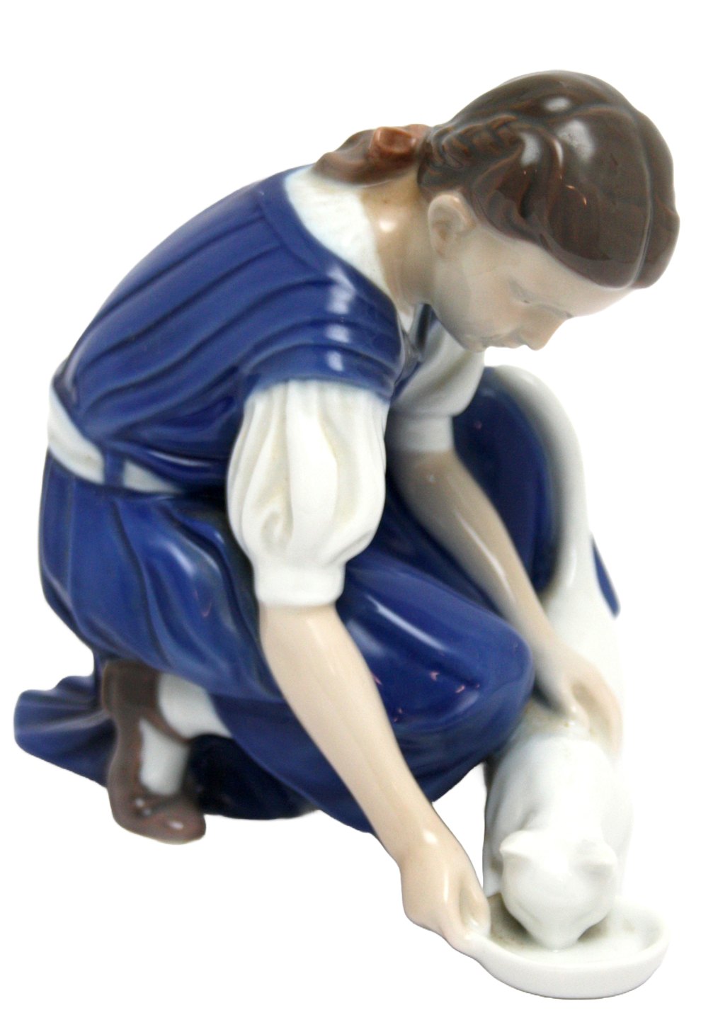 Bing & Grøndahl, Pige med kat der drikker mælk. Designet af Ingeborg Plockross Irminger. Nr. 1745. Højde ca. 14 cm. I. sortering. Pris: 400 kr.