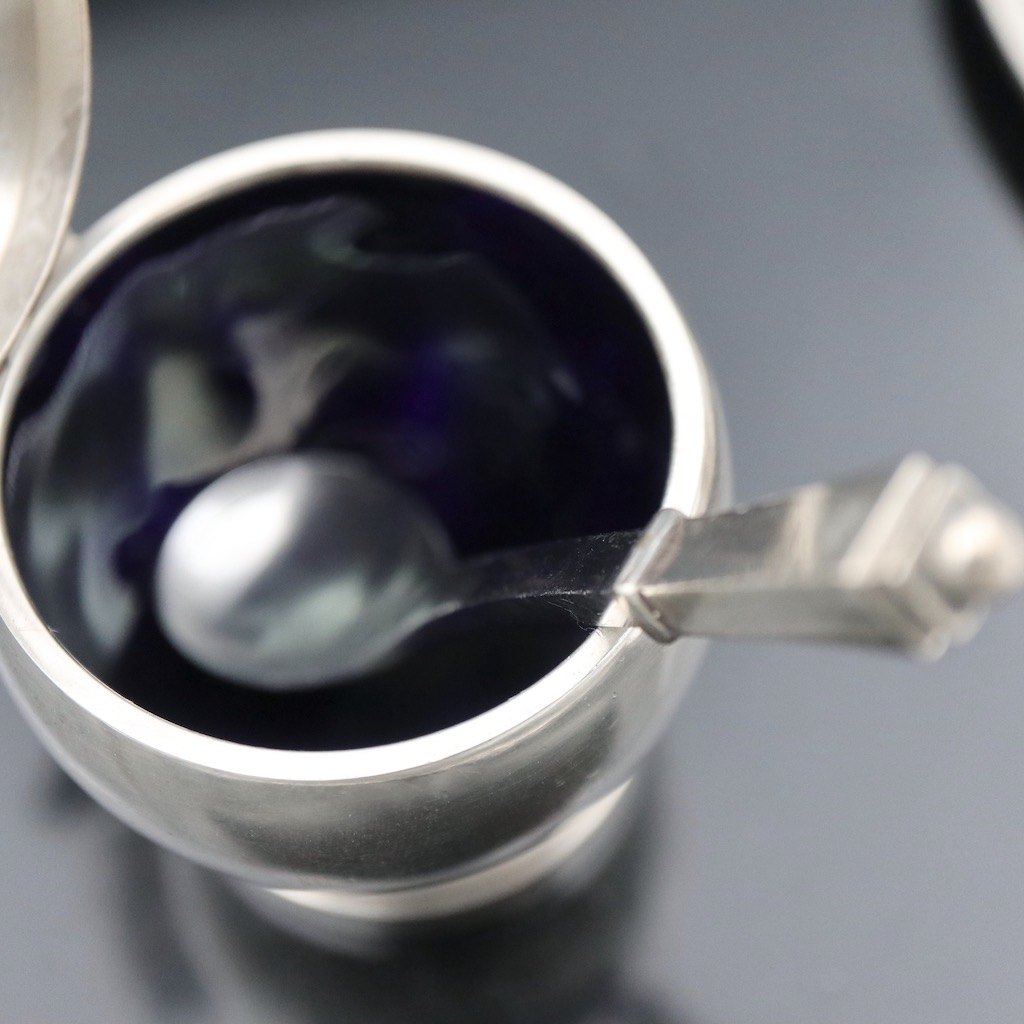 Mustard Pot #632 with blue enamel H. 6,4 cm. / 2,52 inches.