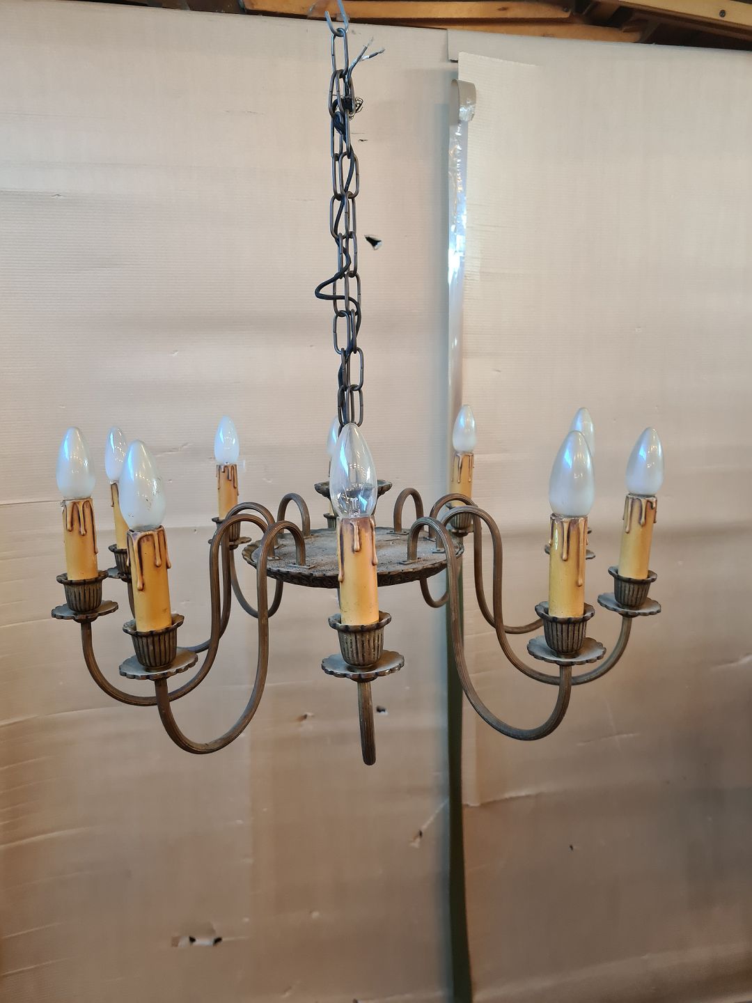 Lysekrone med 10-arme i metal, fra 1950erne.