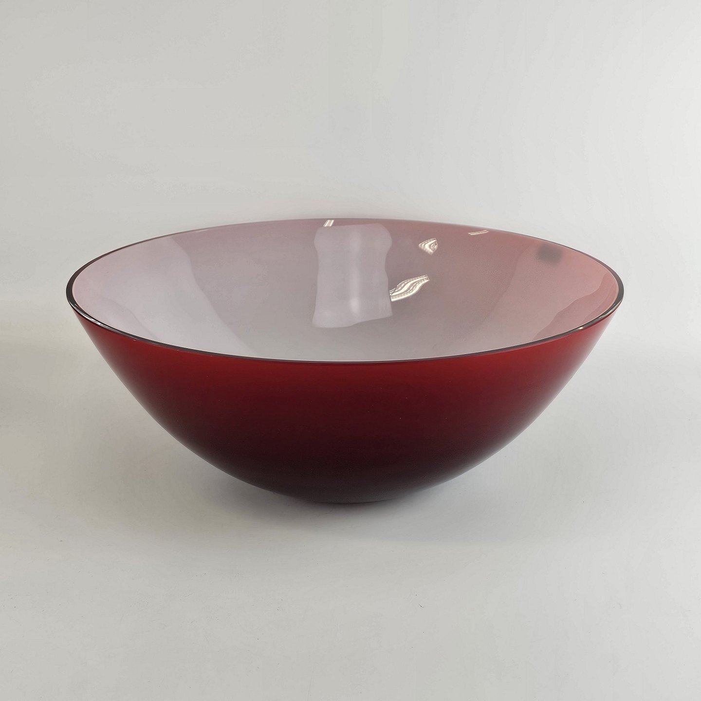 Mundblæst glasvase i rød med hvid inderside, fra serien Cocoon