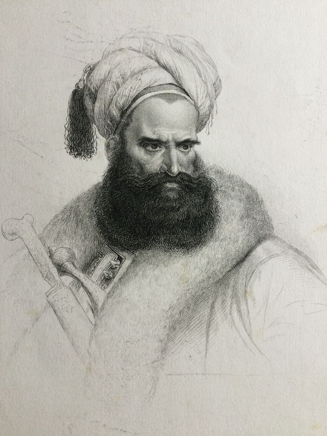 Stylografi af Niels Simonsen 1847 - Brystbillede af en Araber.