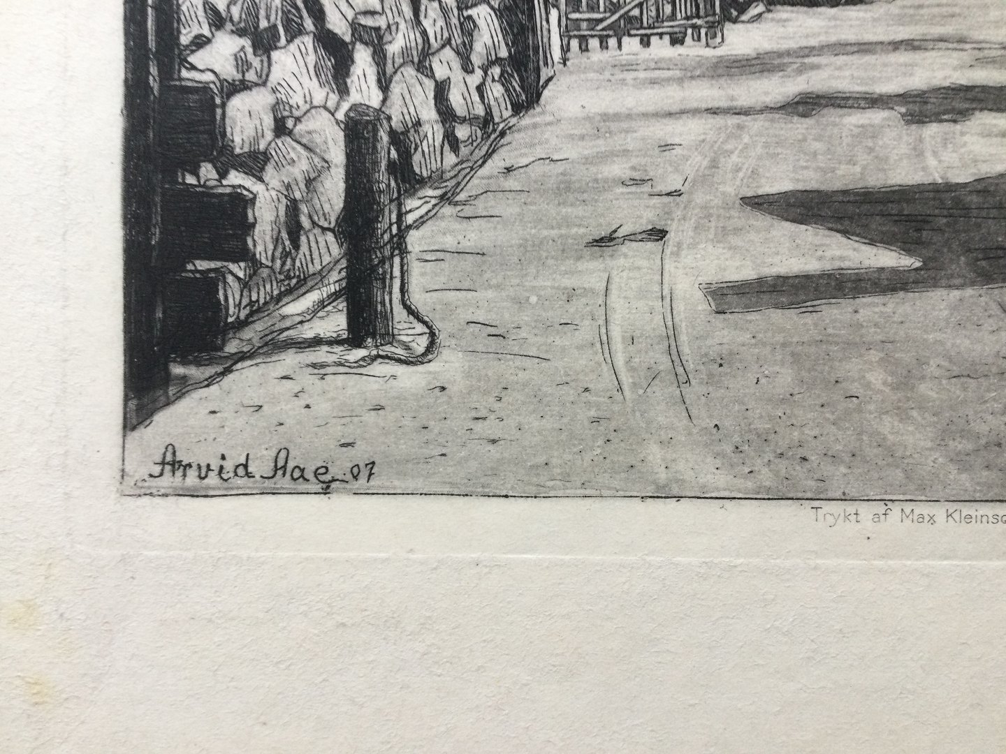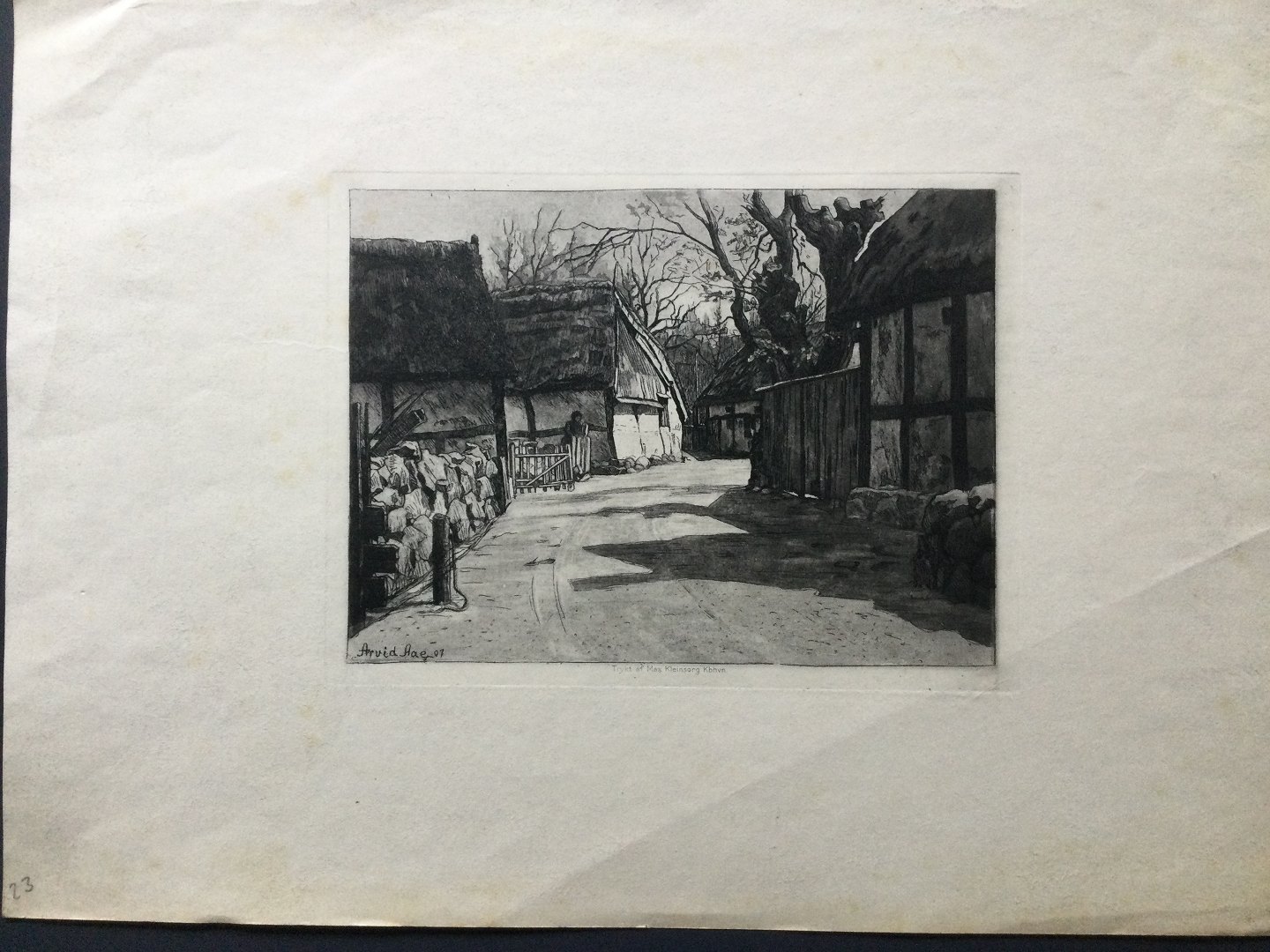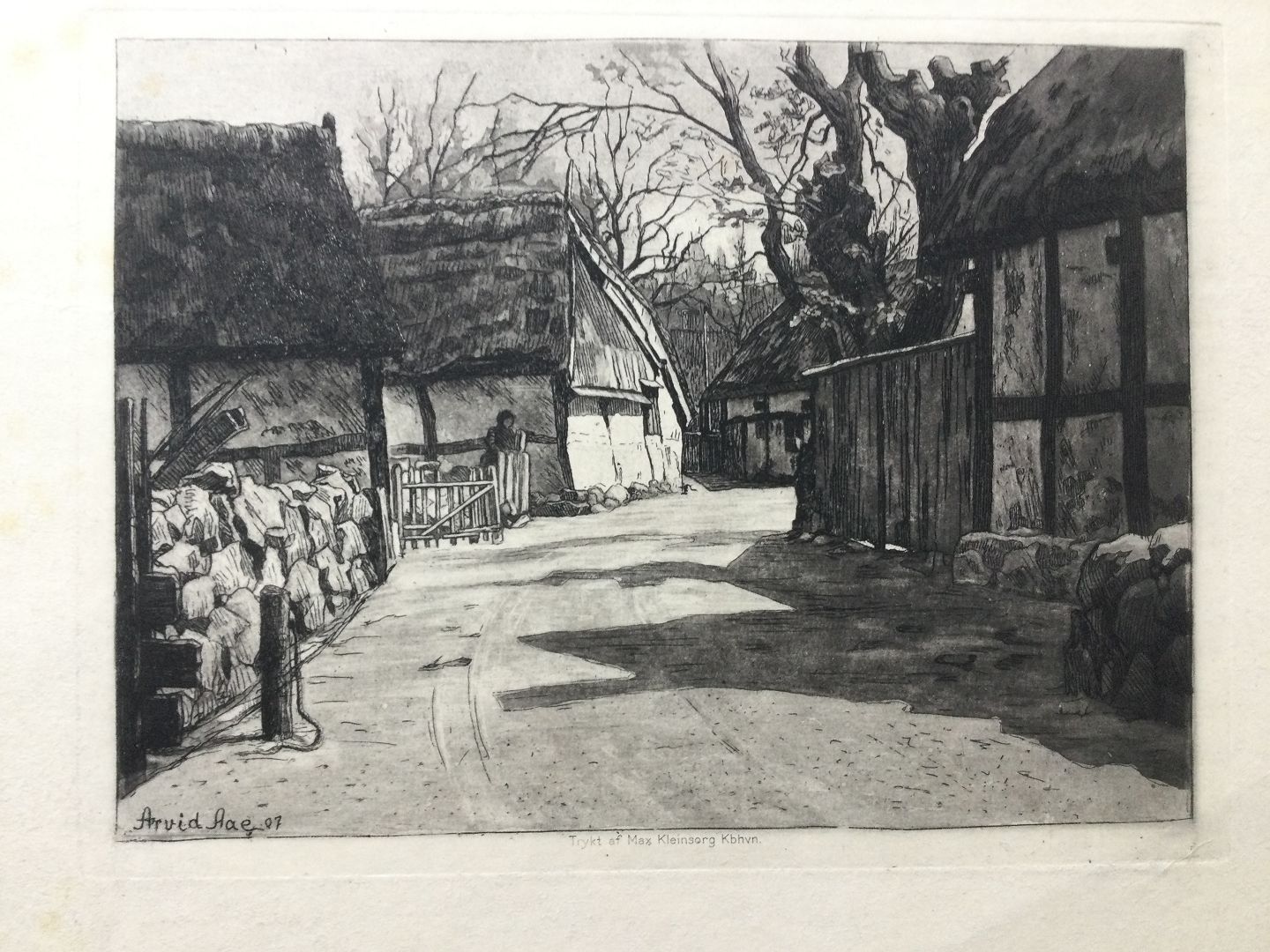 Radering af Arvid Aae - Landsbygade Bornholm 1907.