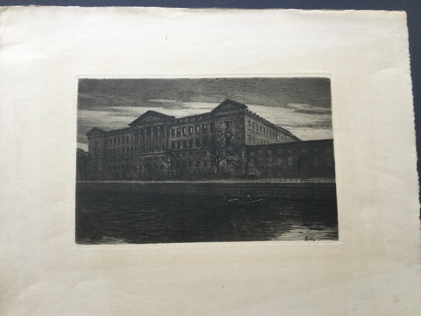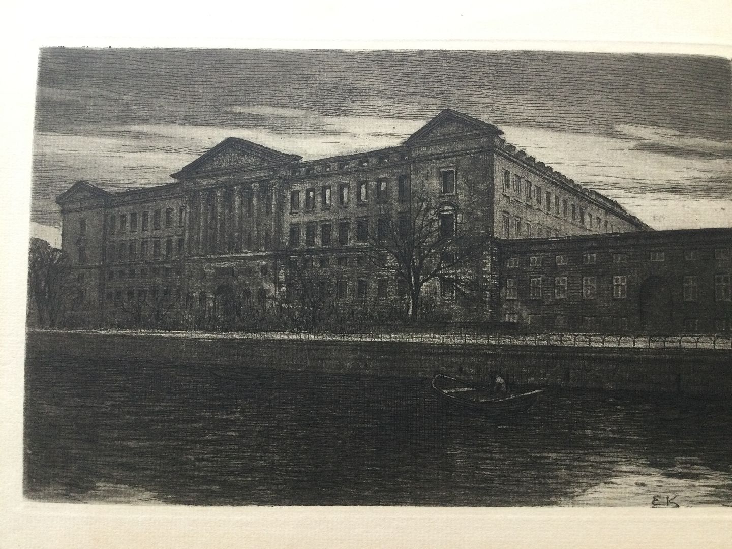 Radering af Emil Krause - C.F. Hansens Christiansborg Slot efter branden i 1884.