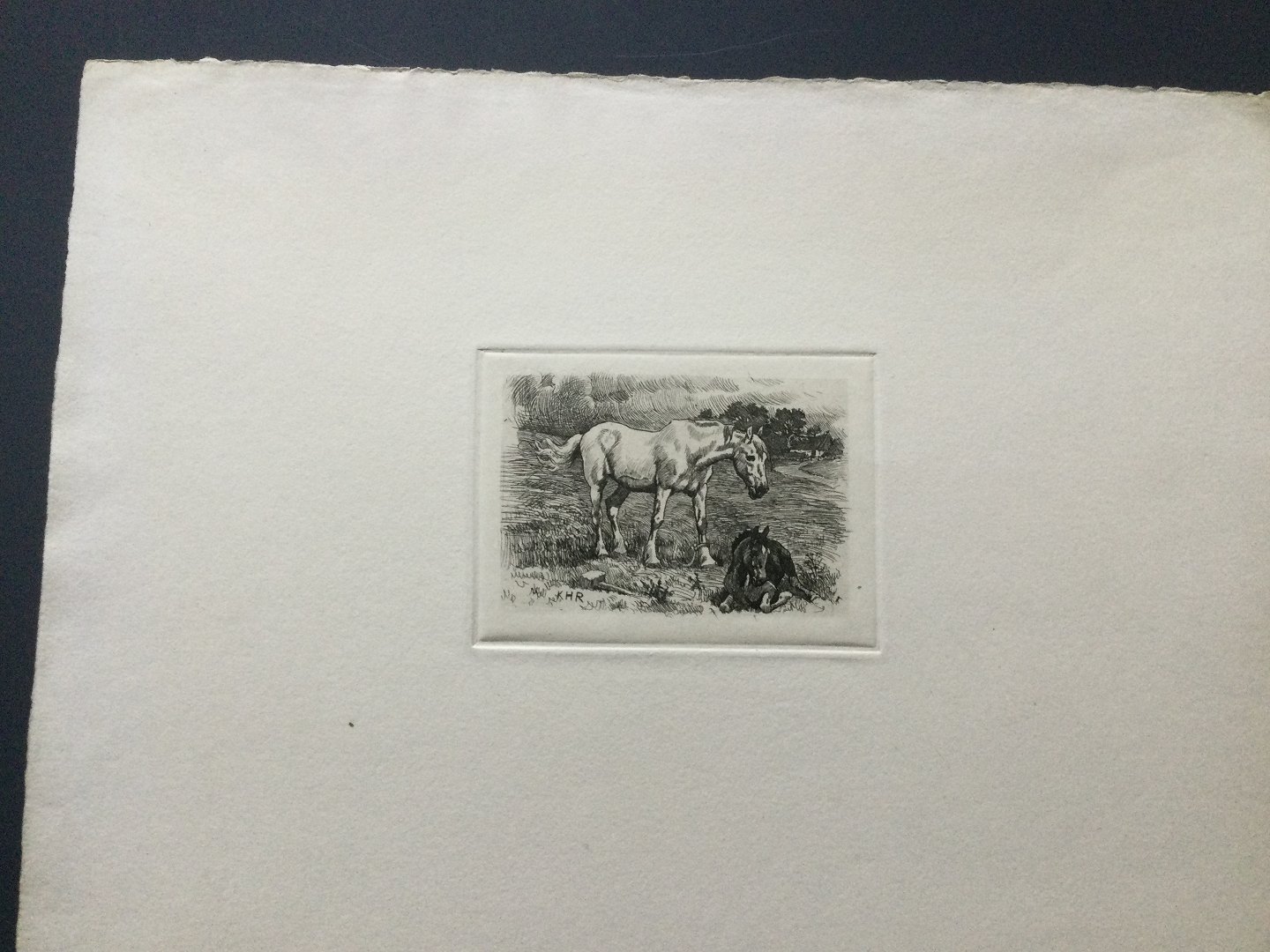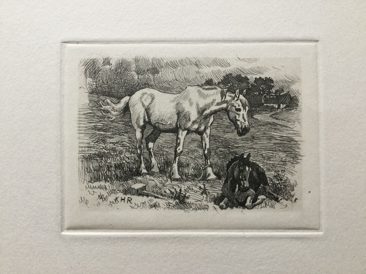 Radering af Karl Hansen Reistrup - Heste på mark.