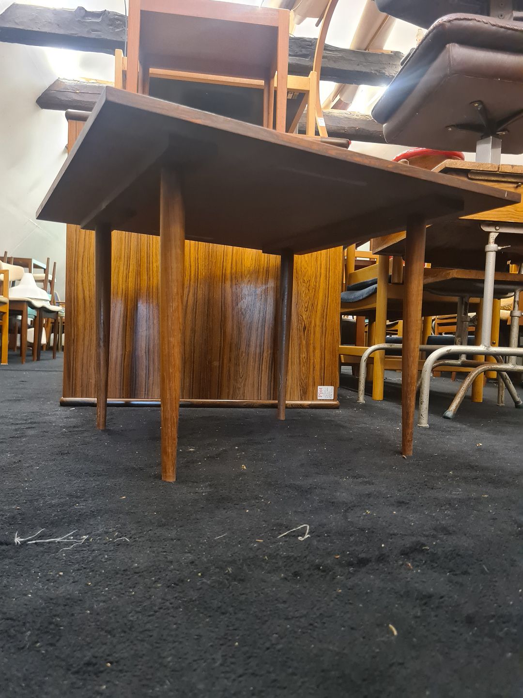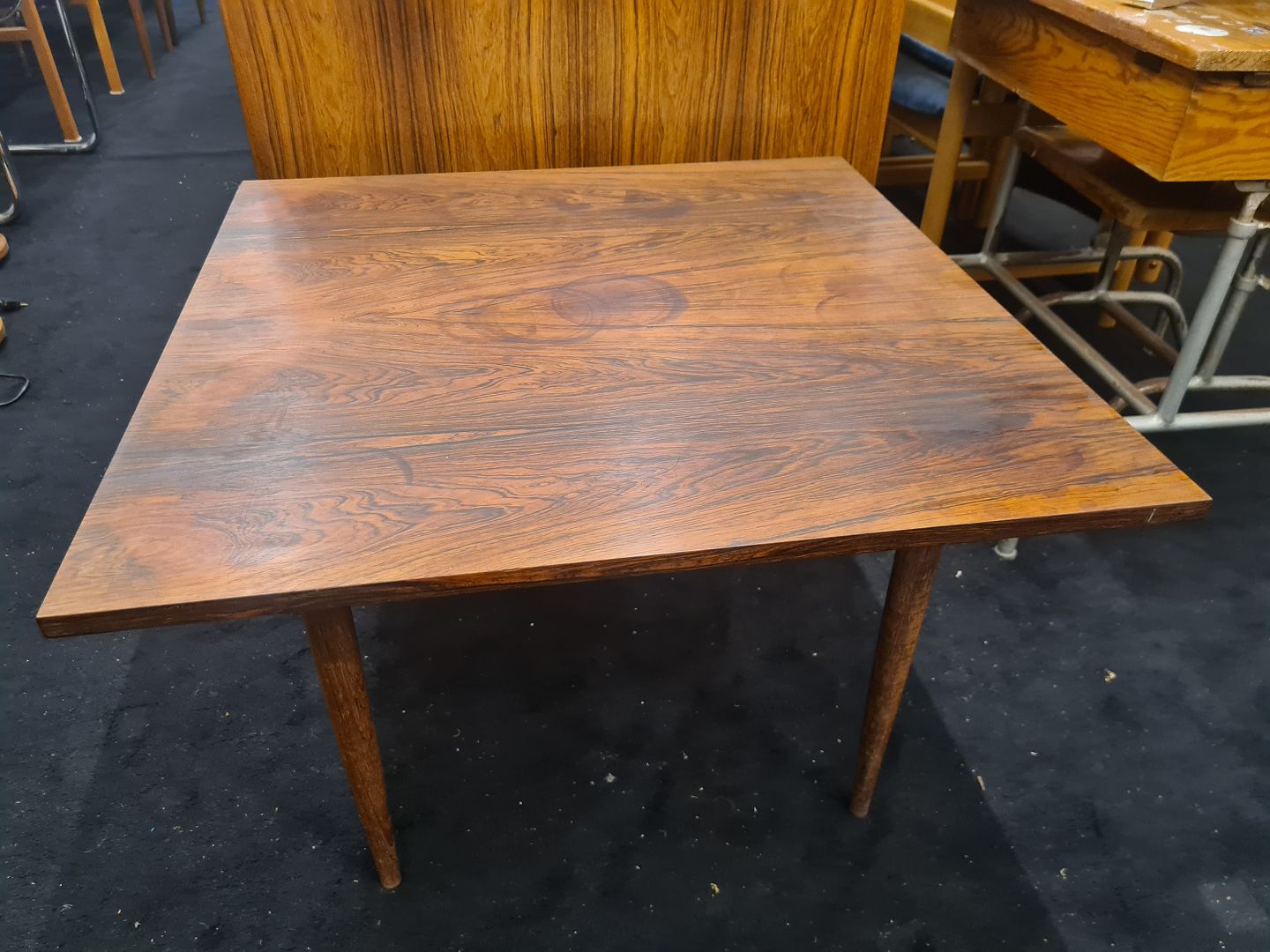 Kvadratisk sofabord fra 1960´erne i finèret palisander. Fremstår pænt og velholdt uden nævneværdige brugsspor.