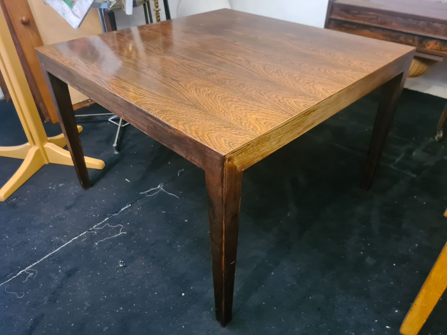 Kvadratisk Severin Hansen sofabord fra 1970´erne i finèret palisander. Fremstår pænt og velholdt uden nævneværdige brugsspor.