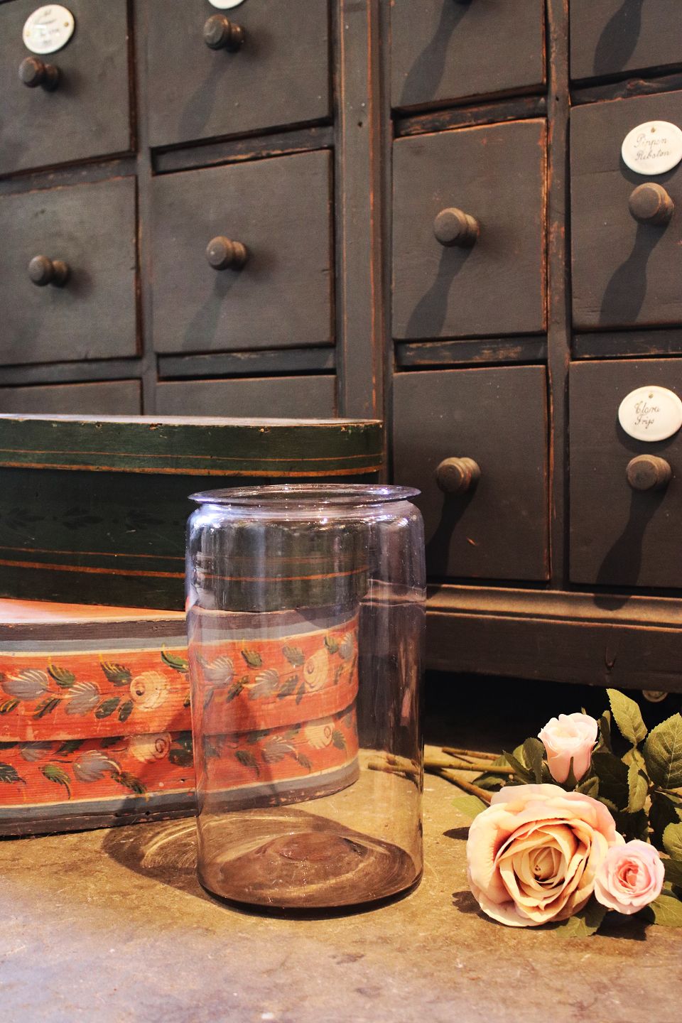 Large antique Swedish hand-blown jam jar with bent edge. H: 28cm...