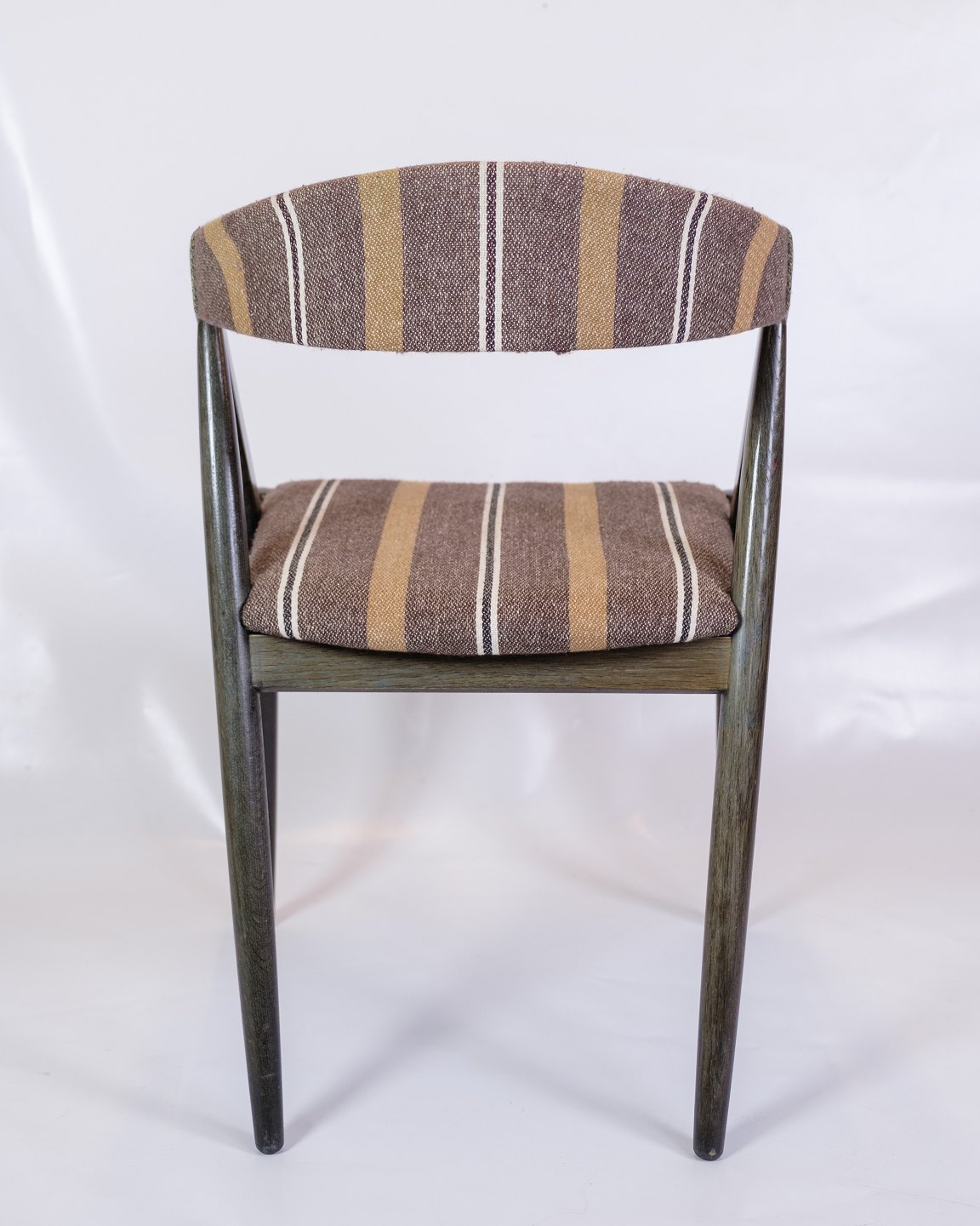 Set Of 6 Dining Chairs - Model 31 - Dark Wood - Upholstered With Striped Fabric - Kai Kristiansen - Schou Andersen - 1960s
