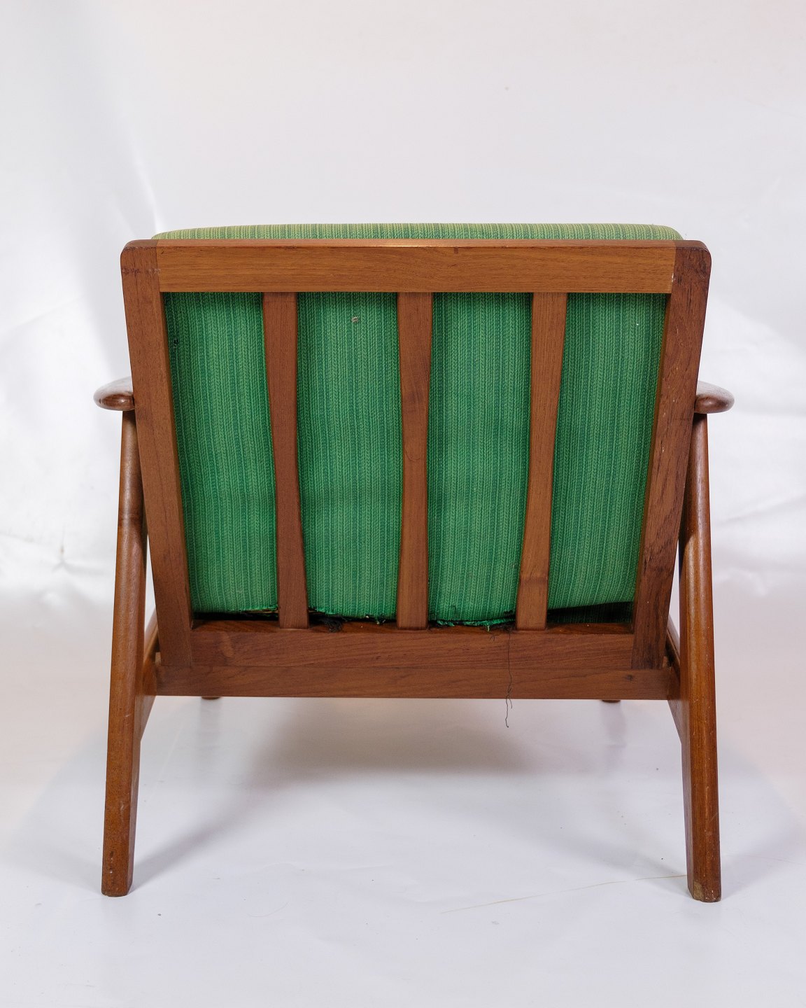Lænestol - Teak - Betrukket i Grønt Stof - Dansk Design - 1960erne