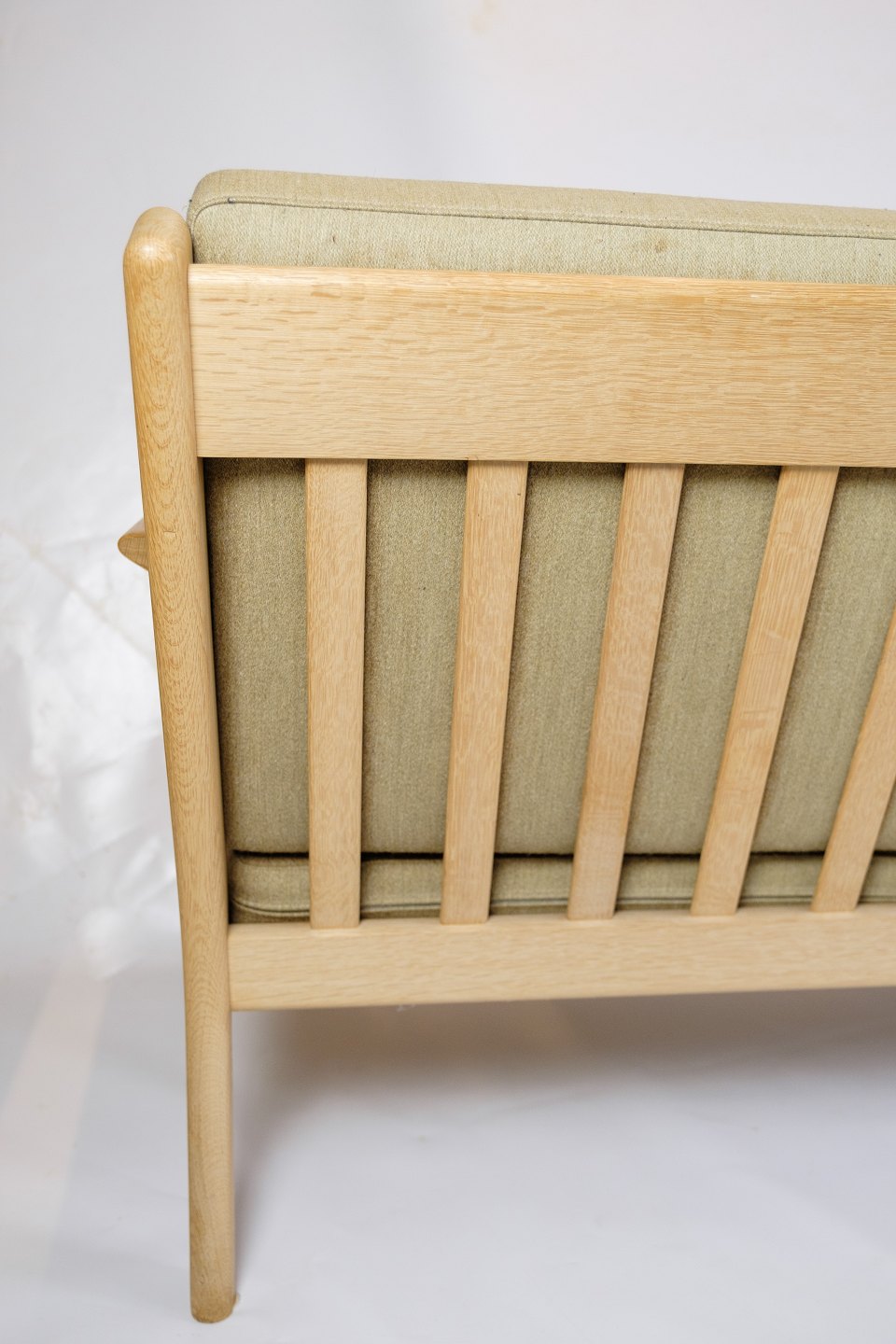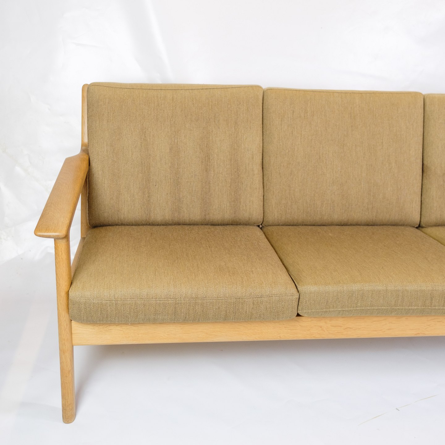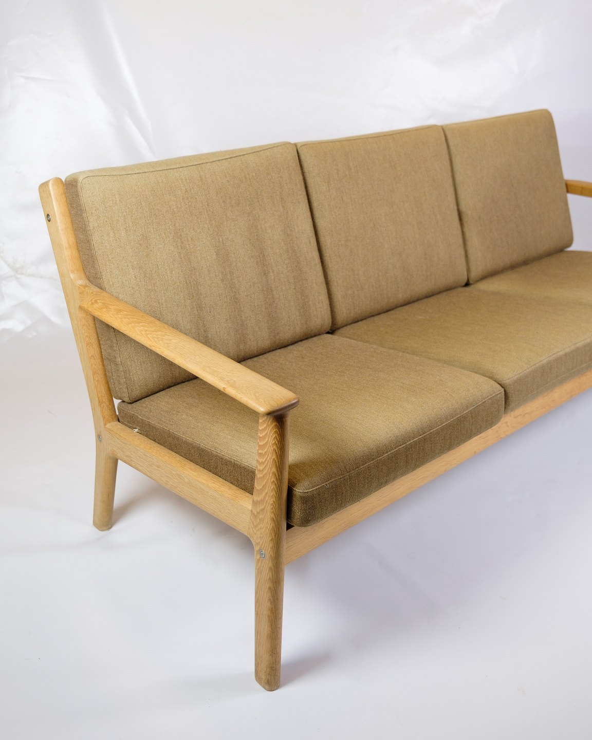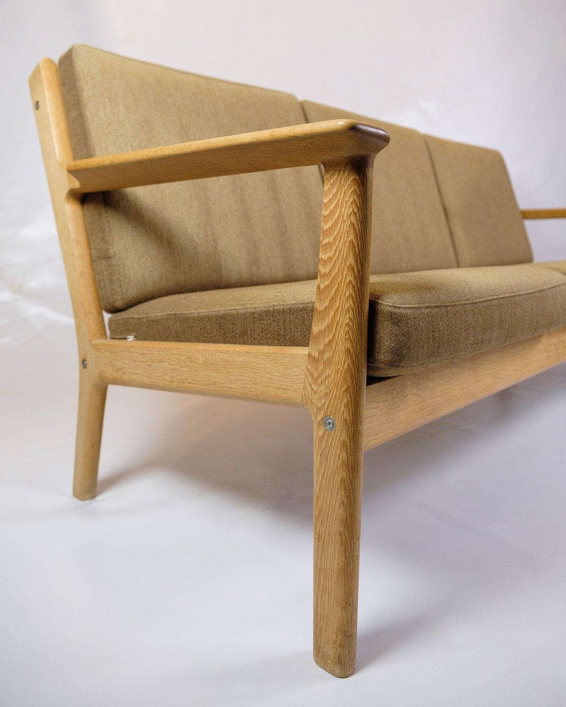 The sofa's frame is made of solid oak, known for its strength and elegant vintage designs. The oak adds a warm and natural aesthetic to the sofa, which is typical of Wegner's design philosophy, which focuses on highlighting the natural beauty of the materials. The wood's fine finish protects it and highlights its rich tones.