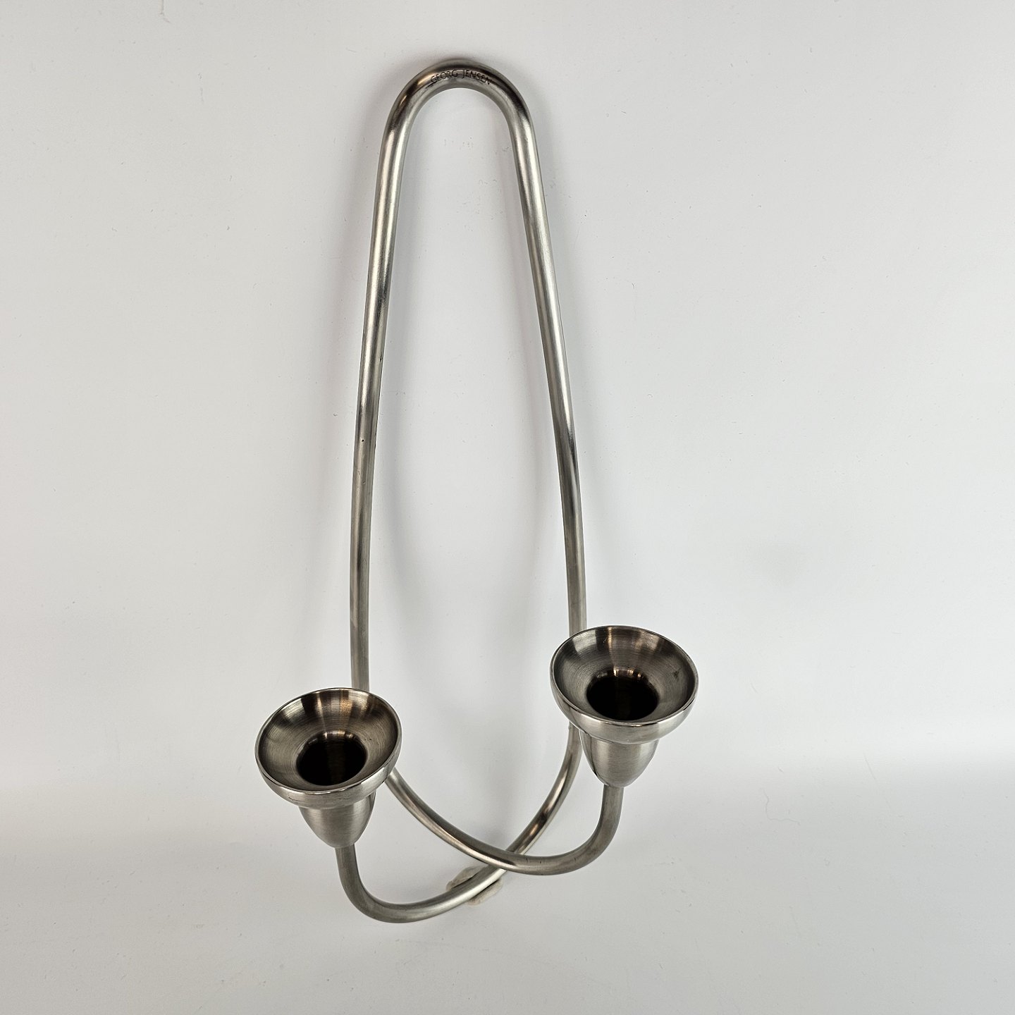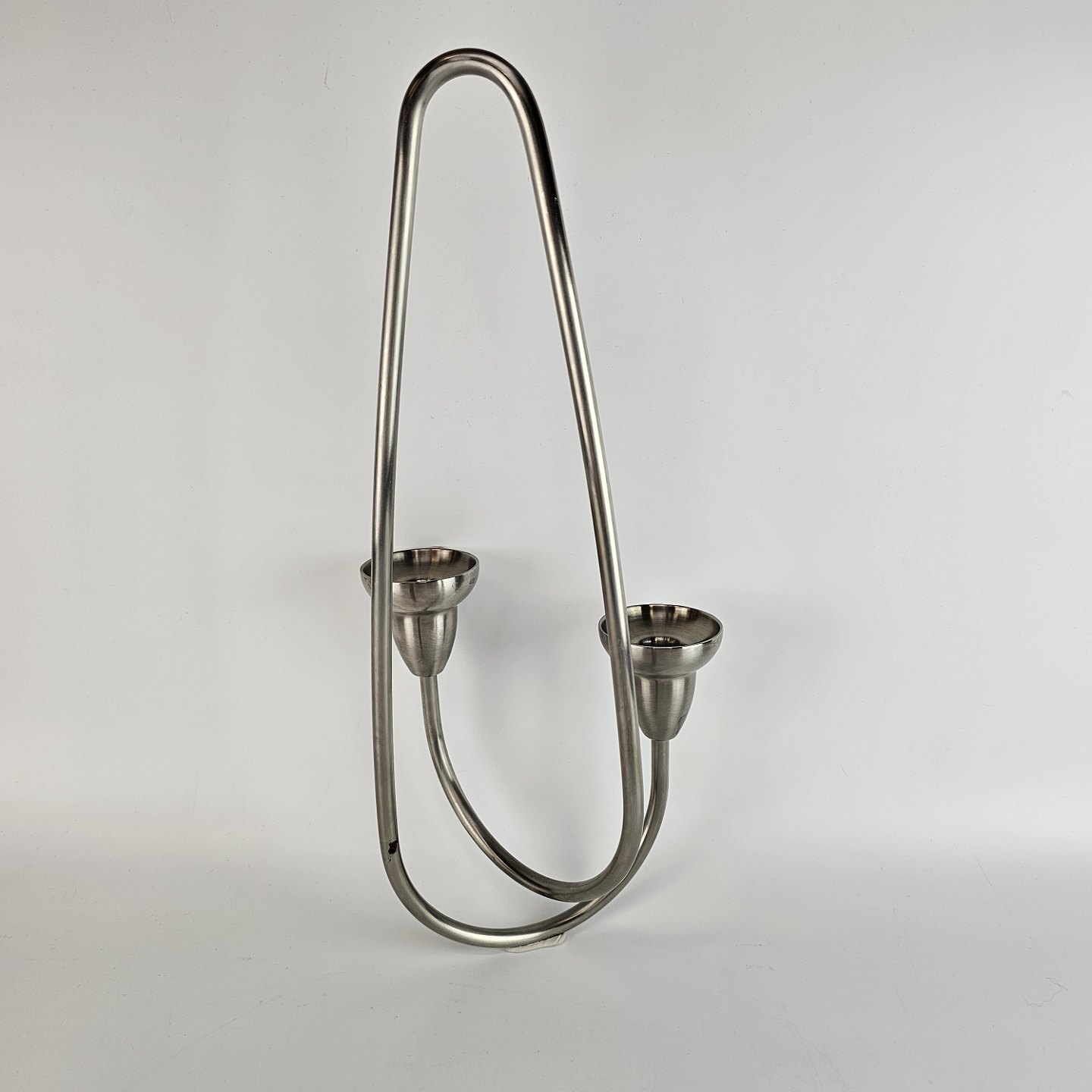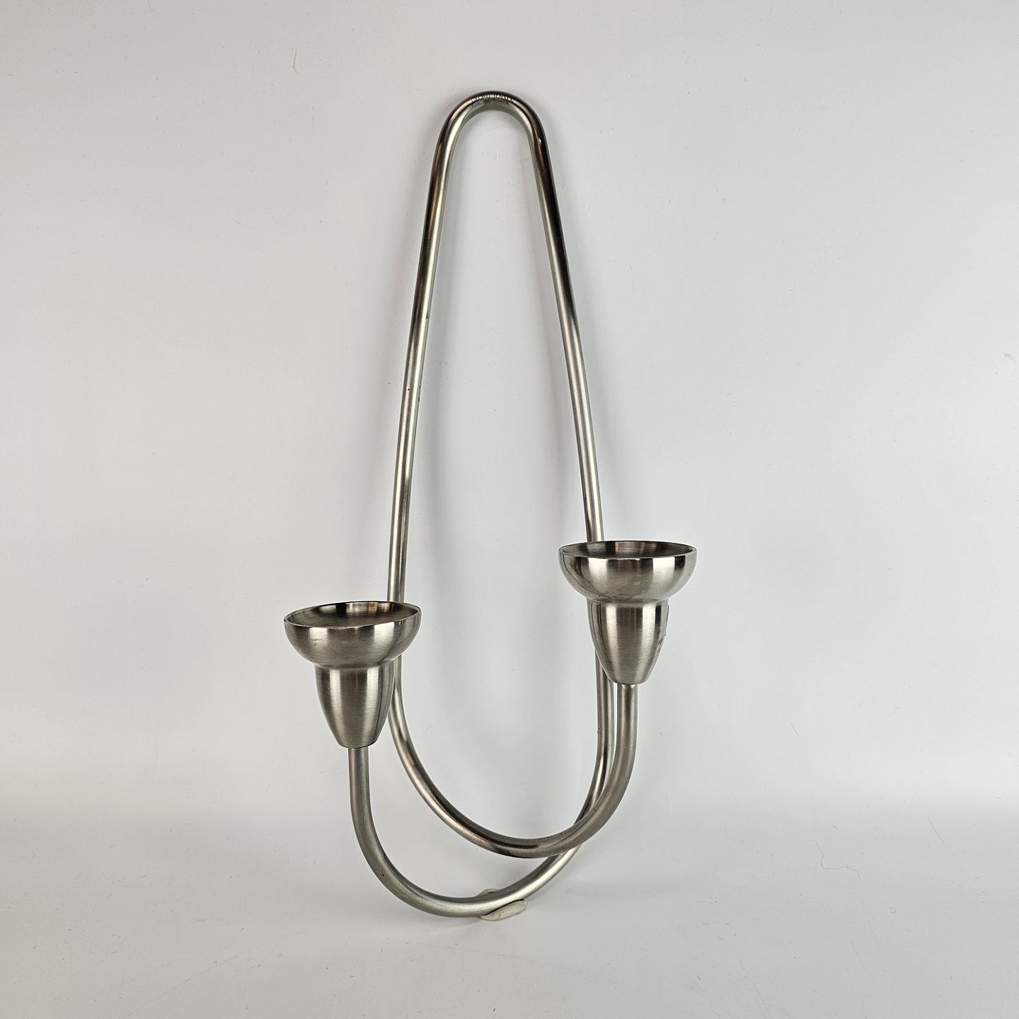 Væglysestage i rustfrit stål med to stager. Fra serien Swing