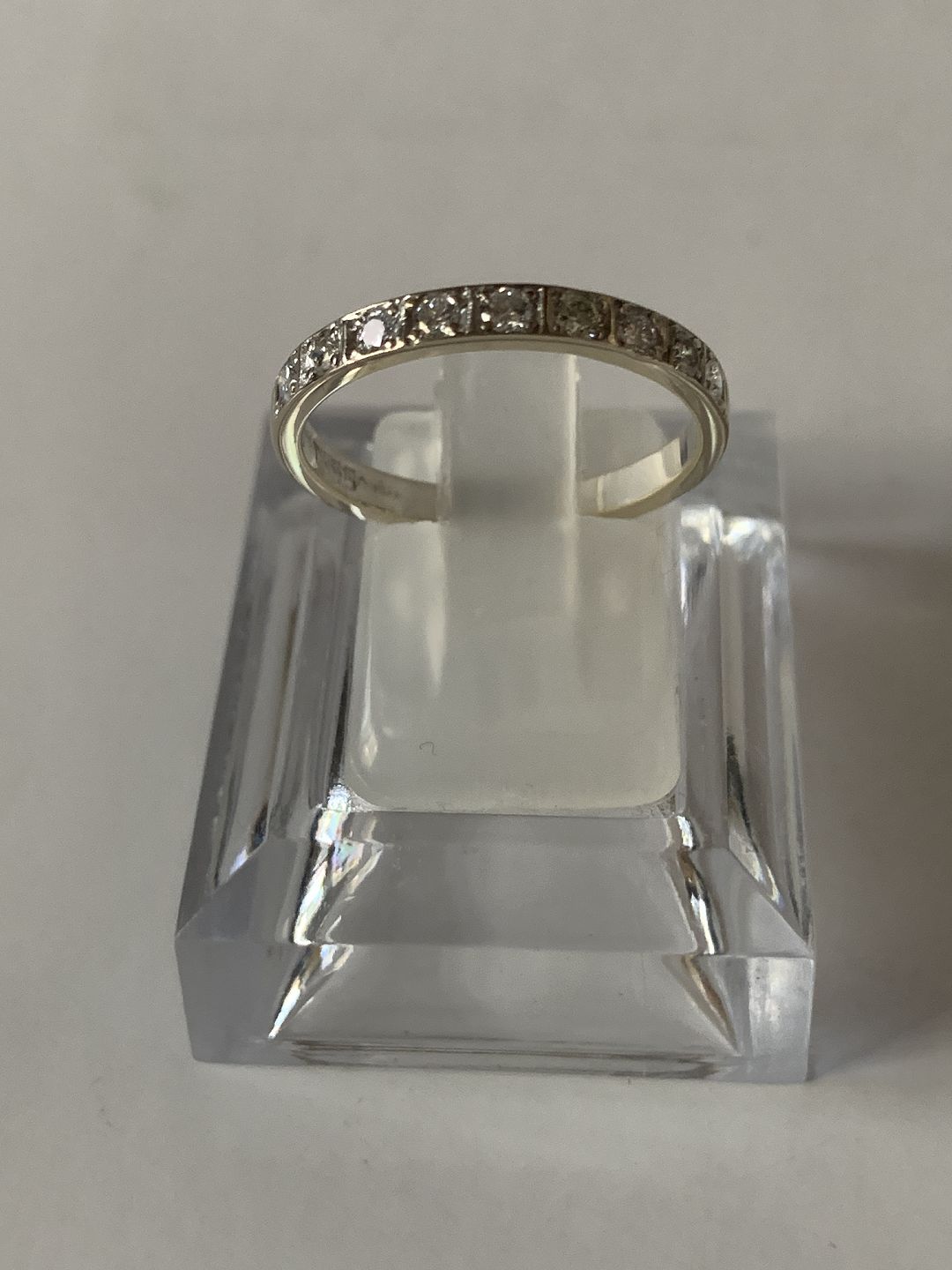 Alliance damering i 14 karat hvidguld, med indlagte brillanter. Størrelse 56,5.