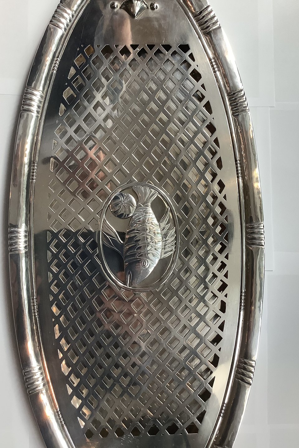 Georg Jensen Silver Fish Serving Tray with drainer by Johan Rohde from 1920 No 335