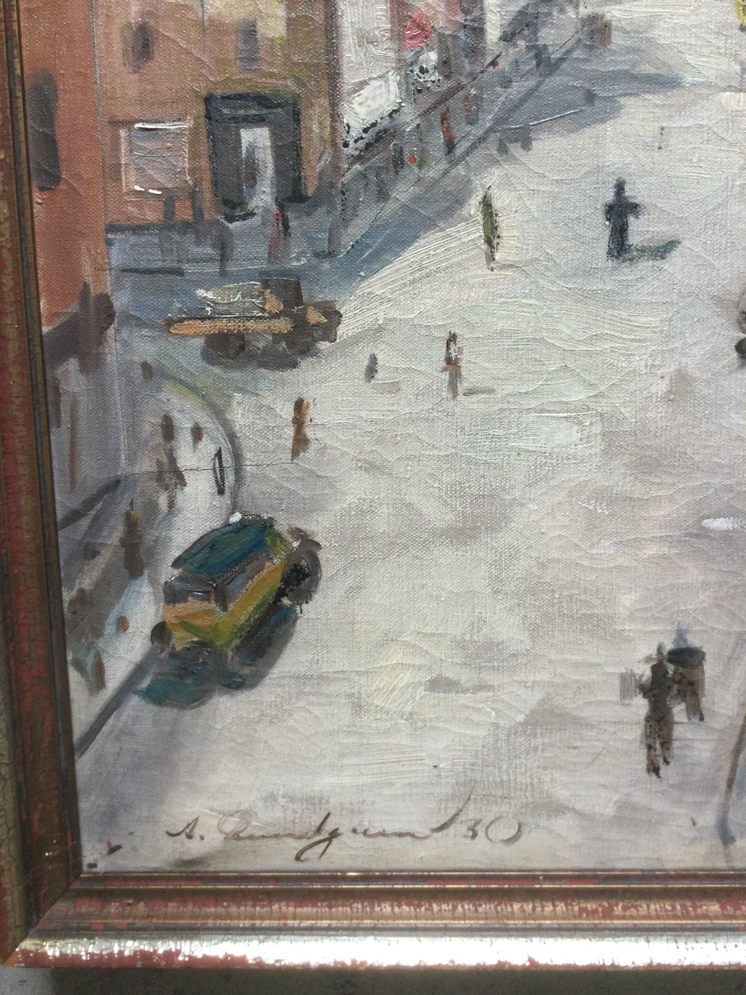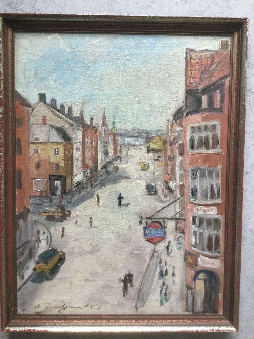 Maleri - Aksel Lundgreen 1930 - Gadeparti - antagelig Aalborg.