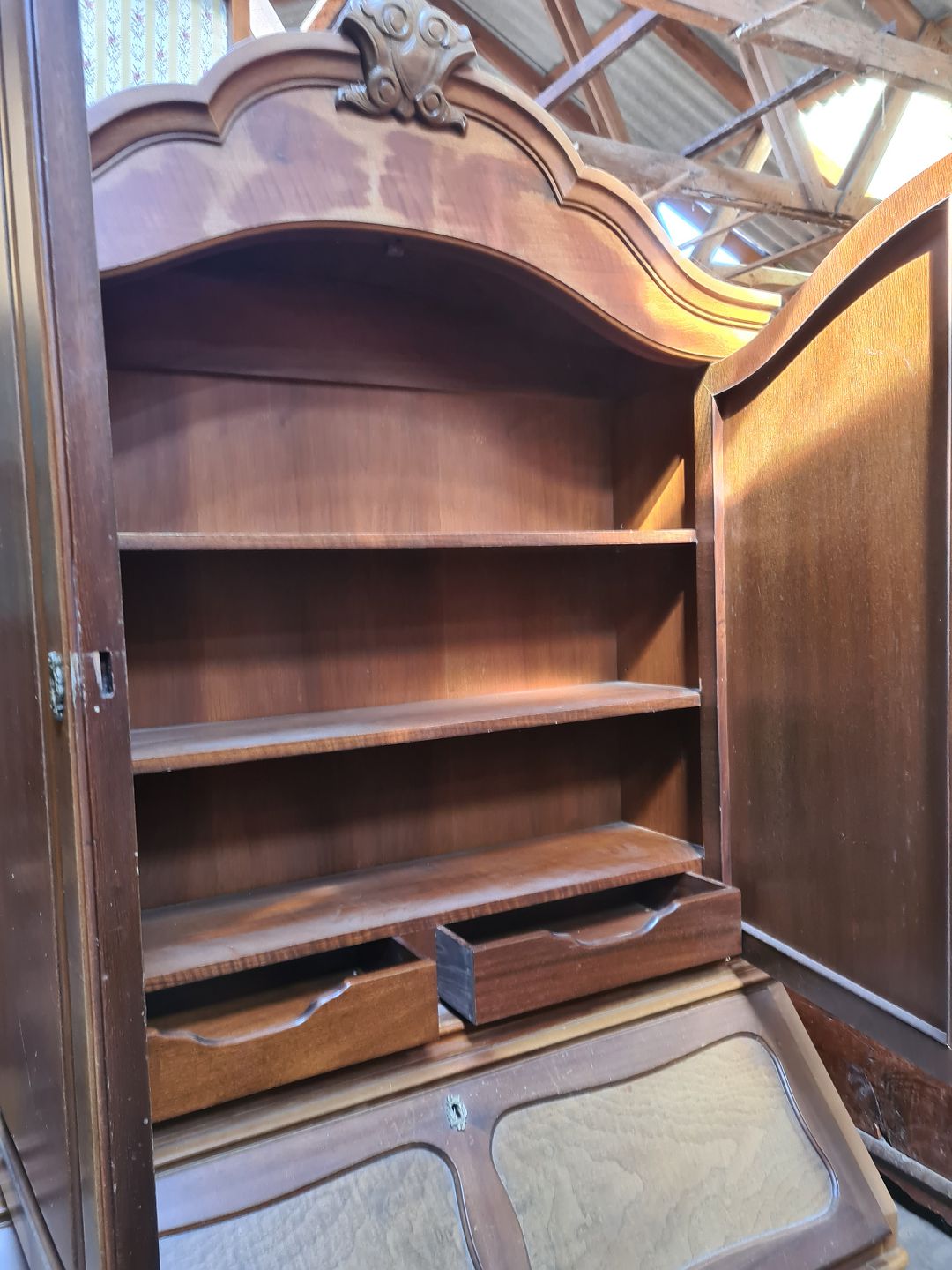 Chatol med overskab i fineret mahogni og bøgetræ, fra 1980erne.