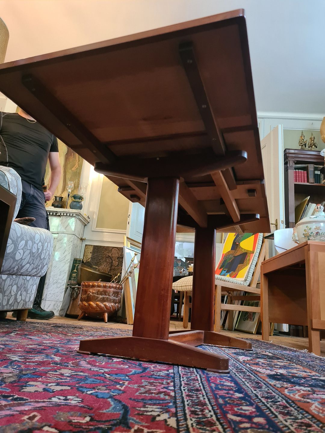 Dansk snedkermester sofabord fra 1930´erne i cuba mahogni og med hollandsk udtræk. Fremstår ok pænt og velholdt dog med lettere brugsspor på bordpladen. Ellers udmærket funktionsdygtigt.