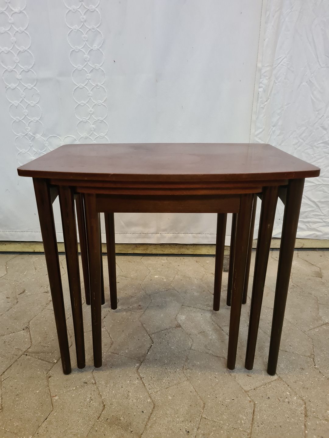 3 Indskudsborde i fineret nødetræ, fra 1960erne.