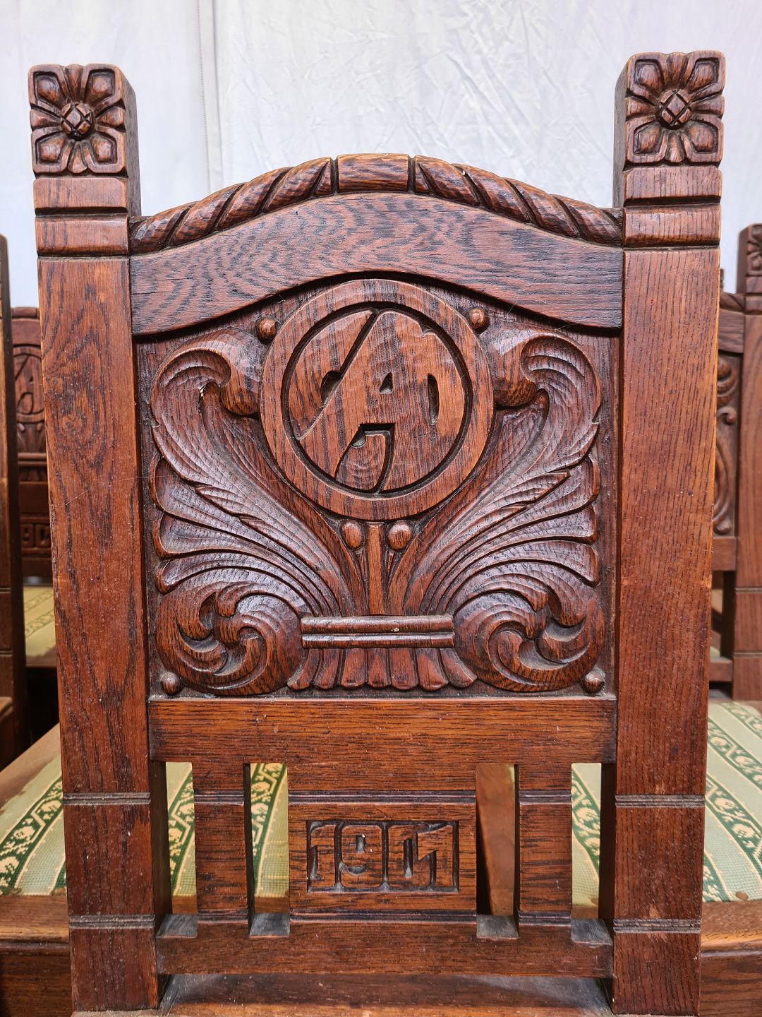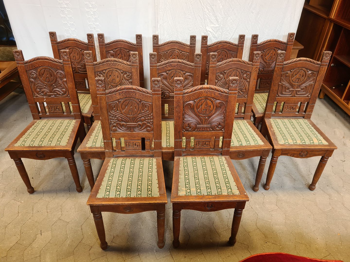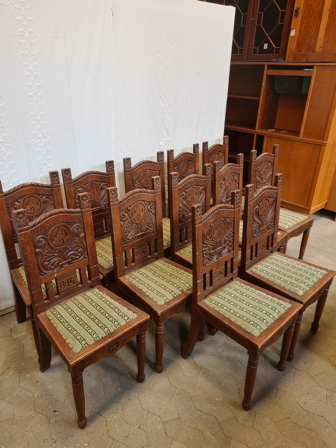 12 Robuste stole i massivt egetræ, fra 1900erne.