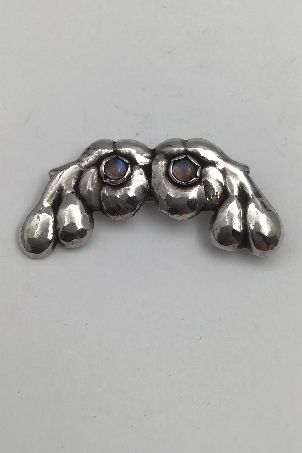 Evald Nielsen Silver Brooch (Moonstone) Measures 5 cm x 2.2 cm (1.96 inch x 0.86 inch) Weight 8.6 gr (0.30 oz)