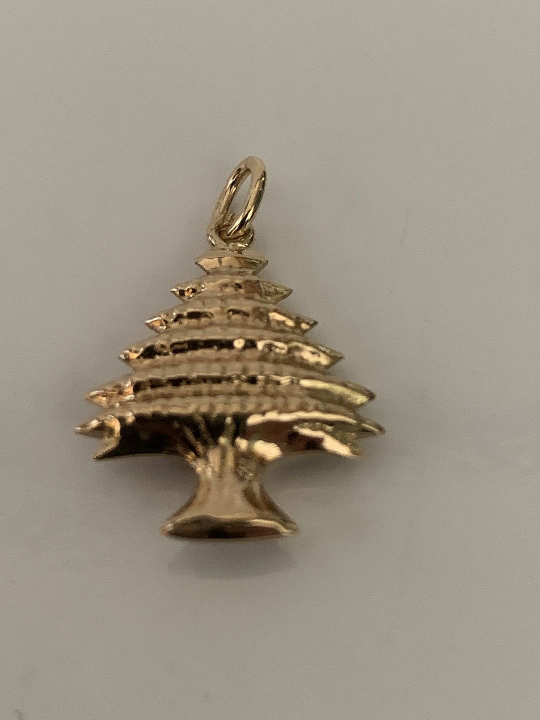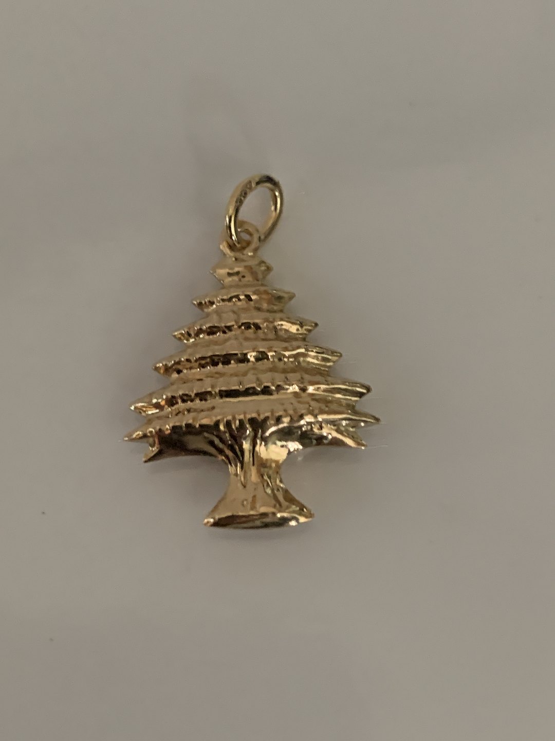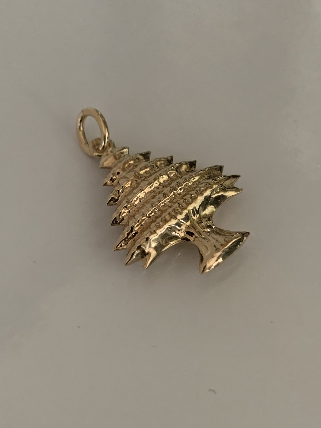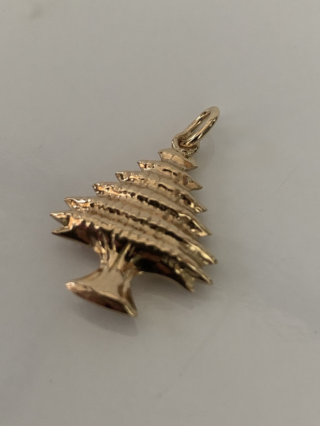 Pendant for necklace, in 14 carat gold, shaped like a Christmas tree.