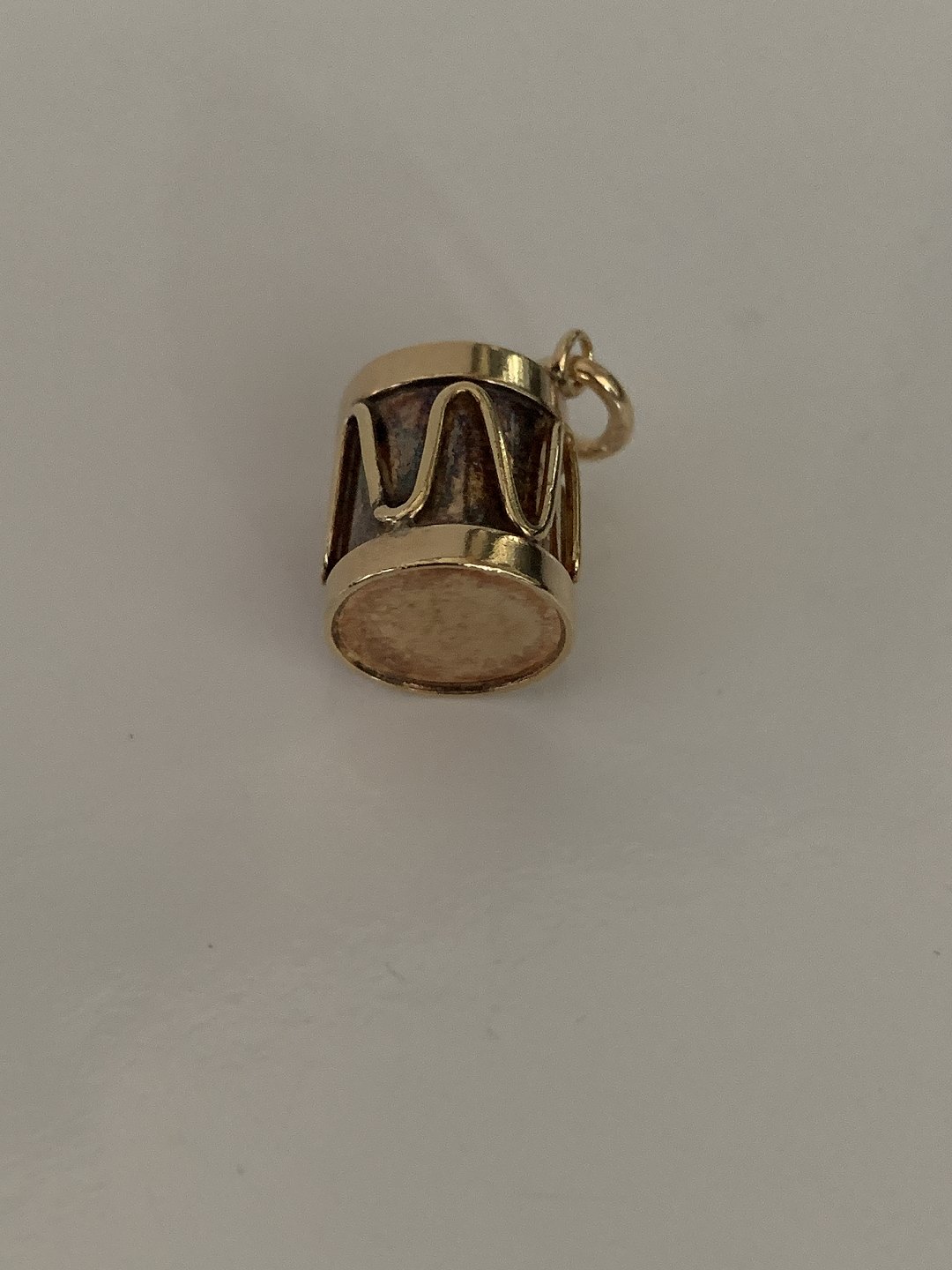 Charm for bracelet in 14 carat gold, stamped 585. Small drum.
