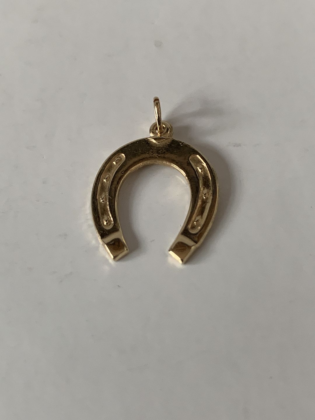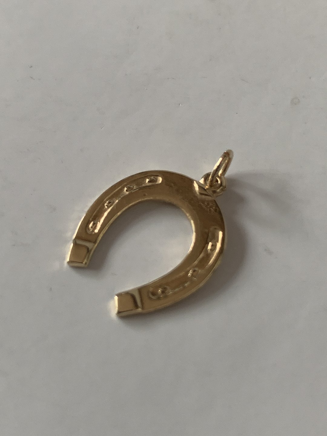 Smukt lille vedhæng, formet som en hestesko. Vedhænget kan bruges som charm i et guldarmbånd, eller som vedhæng til en halskæde. Et smukt lille vedhæng, der samtidig (måske) kan give held og lykke, eller symbolisere kærligheden til heste.