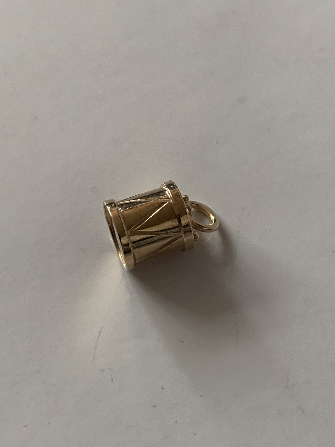 Nice and discreet pendant, shaped like a drum in 14 carat gold. Suitable for a necklace or as a pendant in a bracelet. Beautiful minimalistic and classic piece of jewelry that has been used for many years.