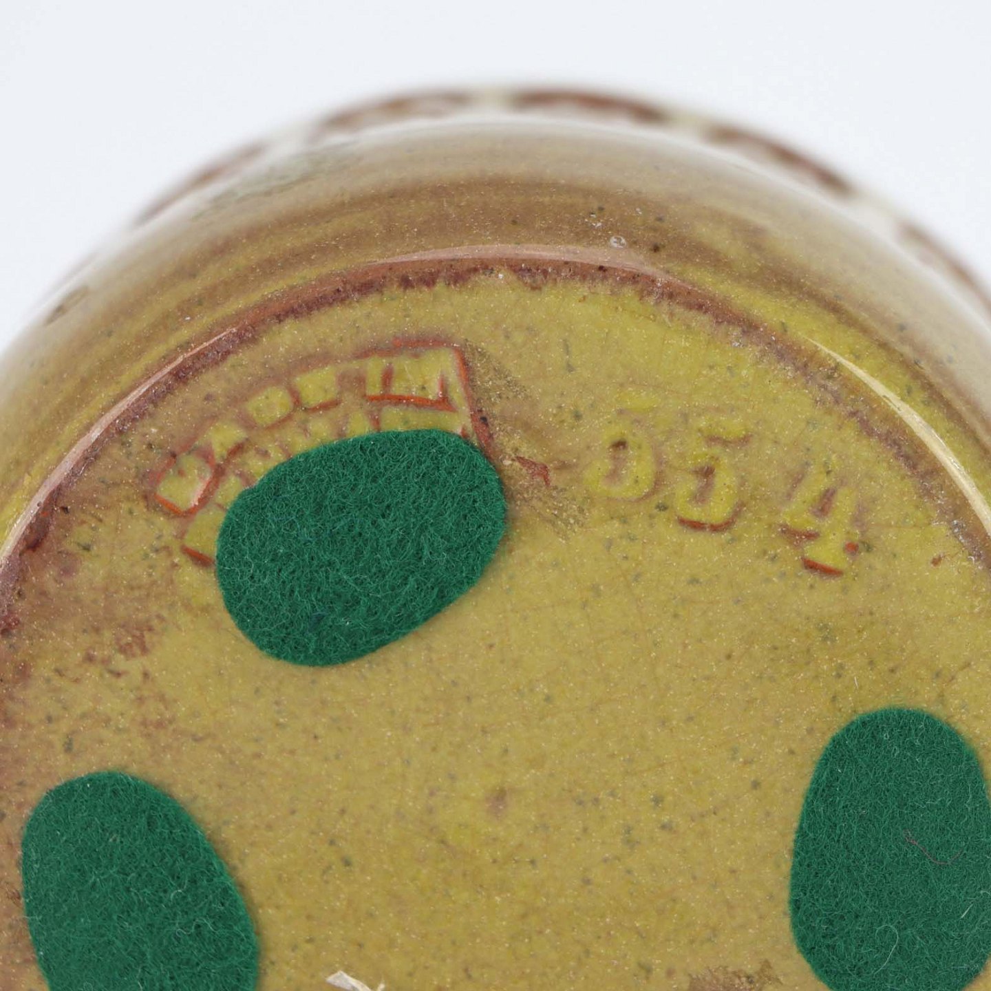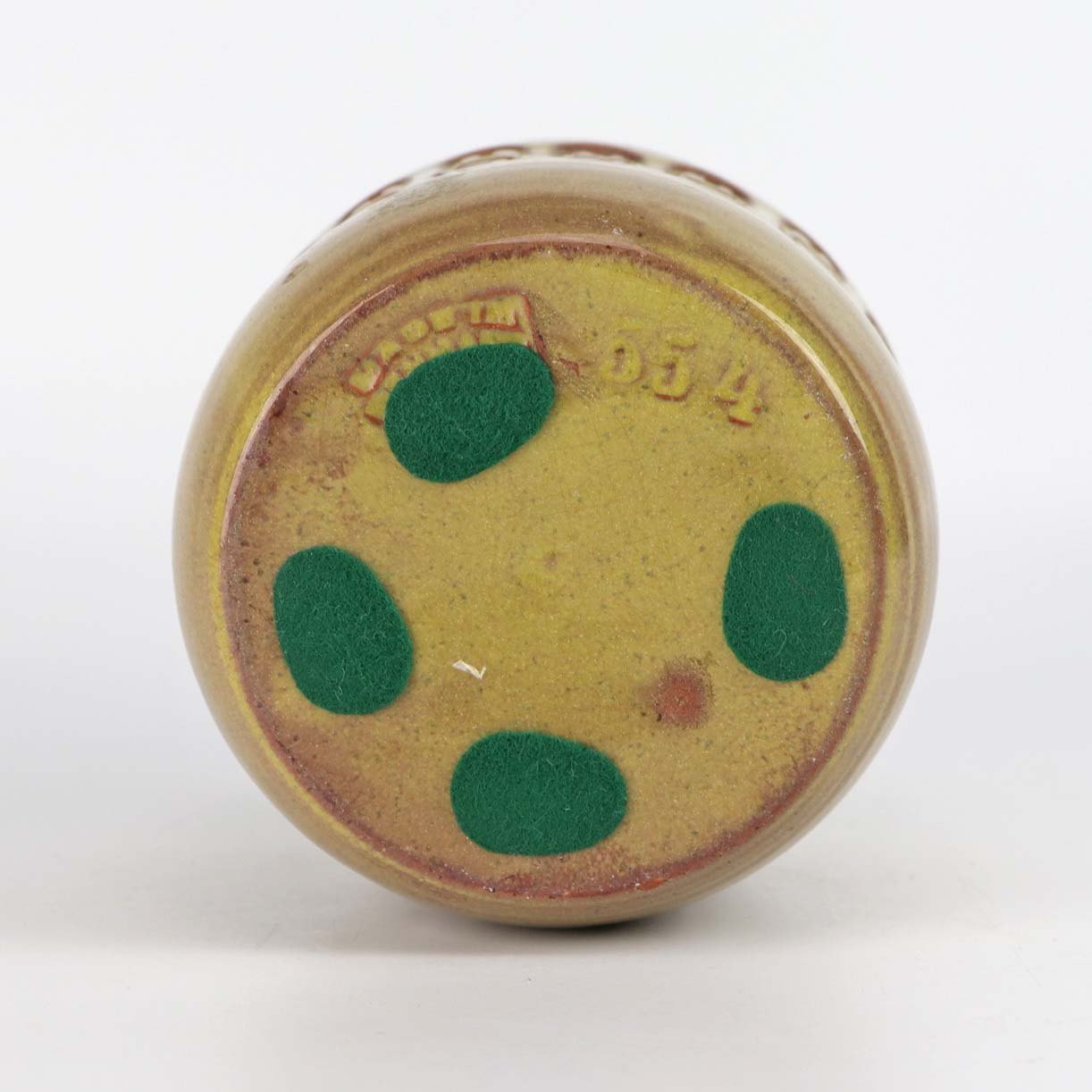 Vase i gul glaseret stentøj med abstrakt mønster og slank hals nr. 554