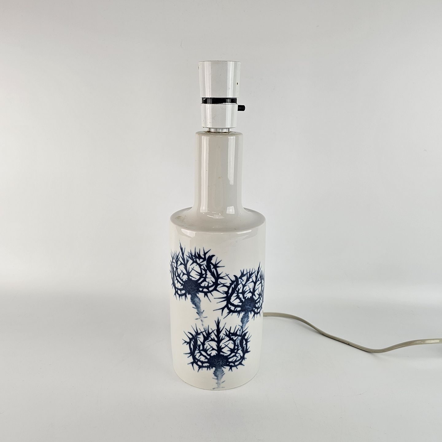 Kongelig bordlampe af porcelæn, dekoreret med blå tidsler. Nr. 7141 den store model