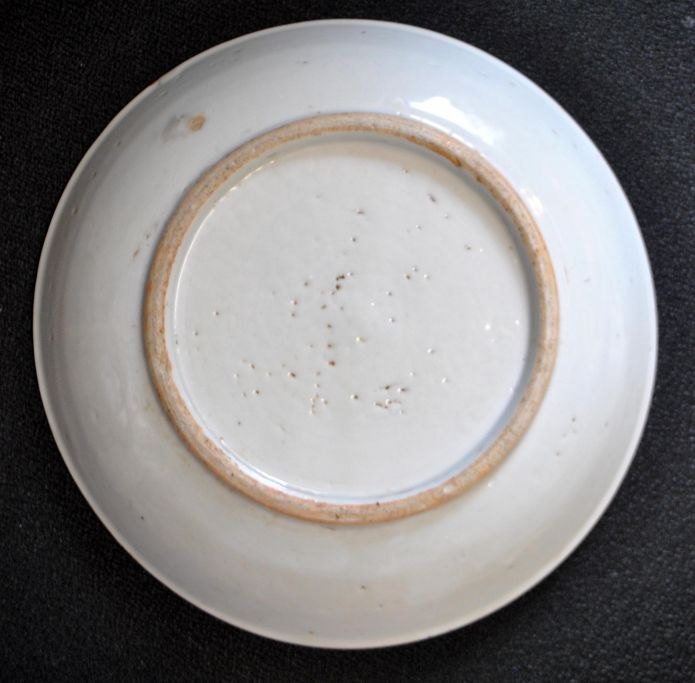Chinese porcelain plate, 19th century. Polychrome decoration with deer in landscape. Stamped. Dia.: 18.5 cm. Height: 3.5 cm.