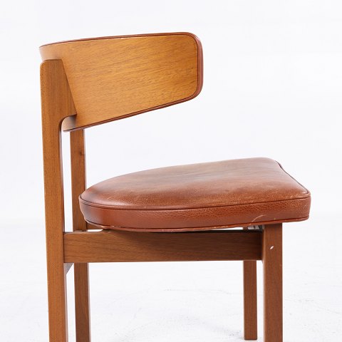BM 3245 - Karmstol i mahogni og originalt, patineret rødbrunt læder.