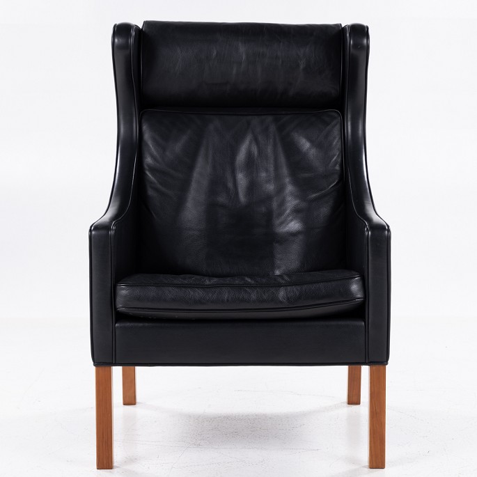 BM 2204 - The 'Wingback Chair' easy chair in original black patinated leather with distressed legs.