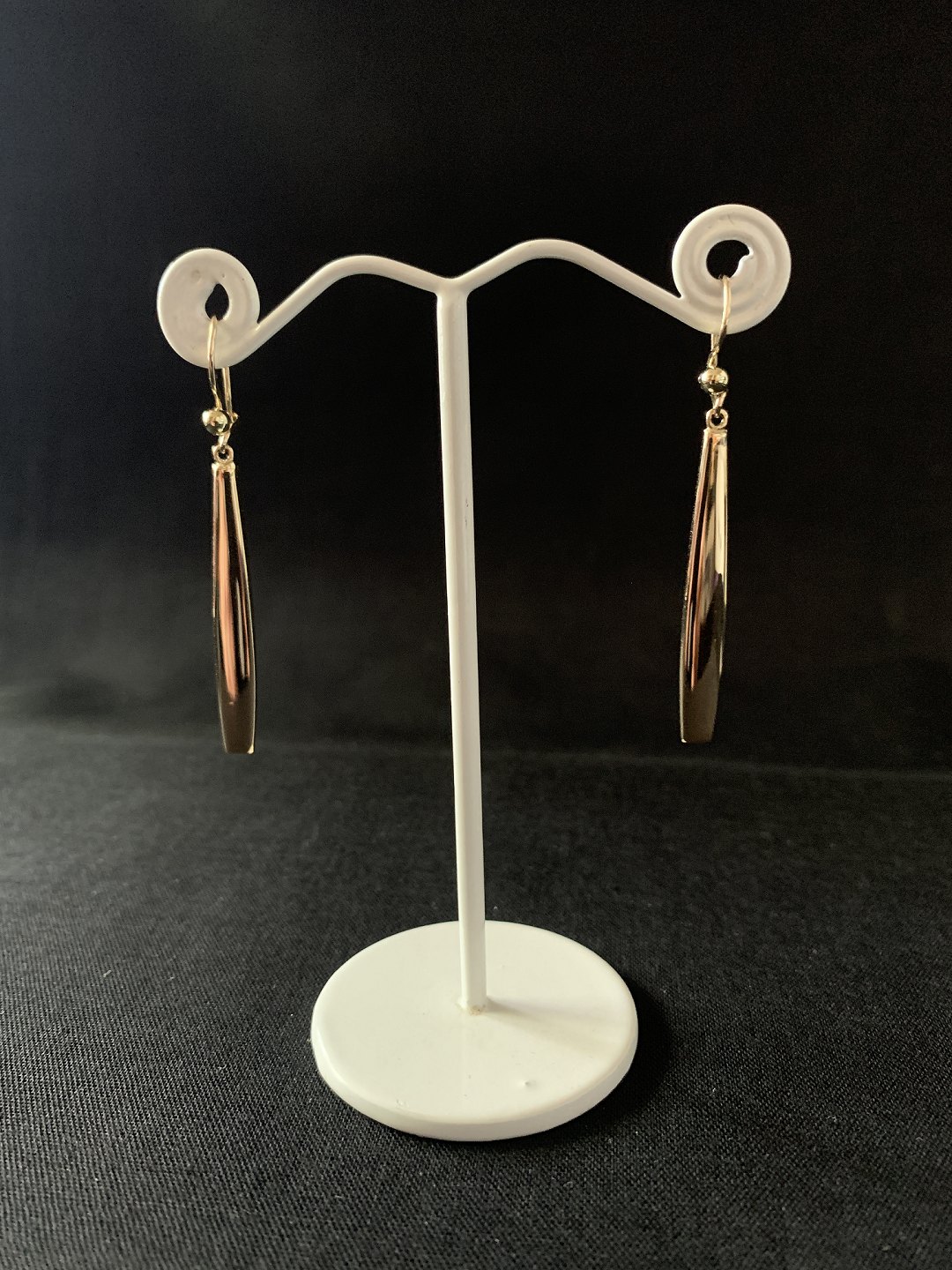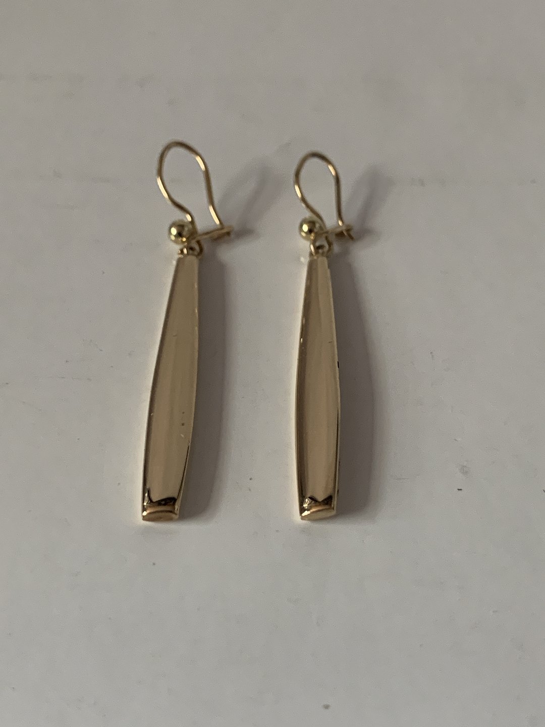 These gold earrings are beautiful and stylish in their expression. The long rods that hang from the earring give life to the earrings. The light is reflected in a dynamic way, so that the earrings bring life to the face. Use the earrings for everyday life or parties - these earrings can do both.