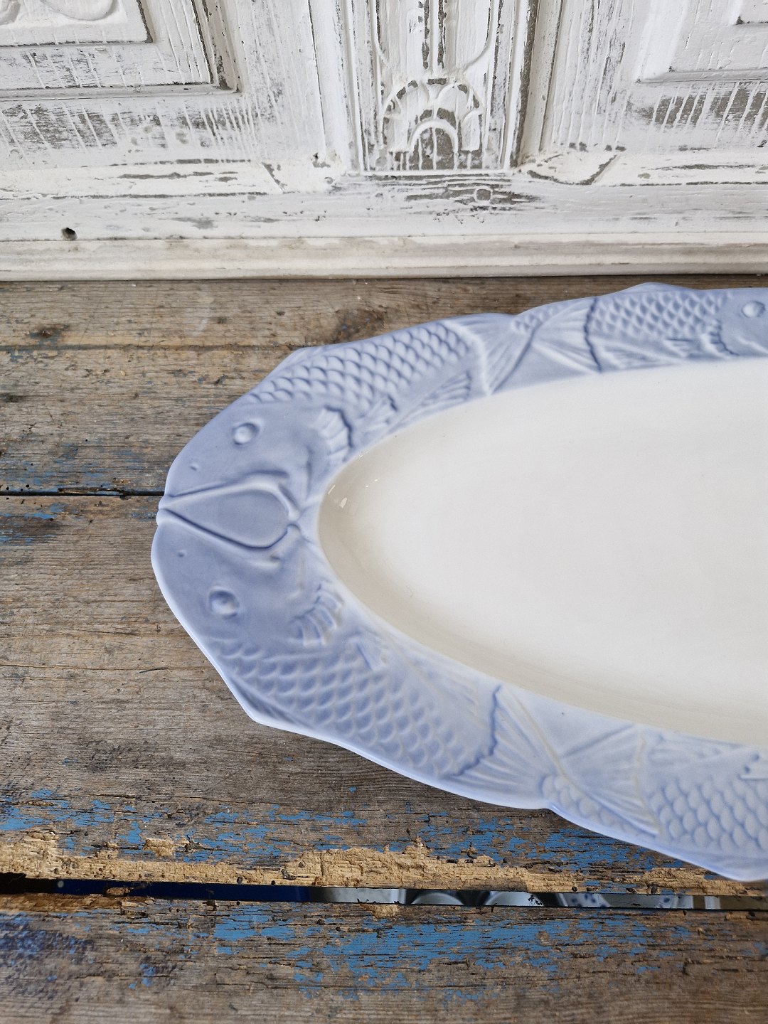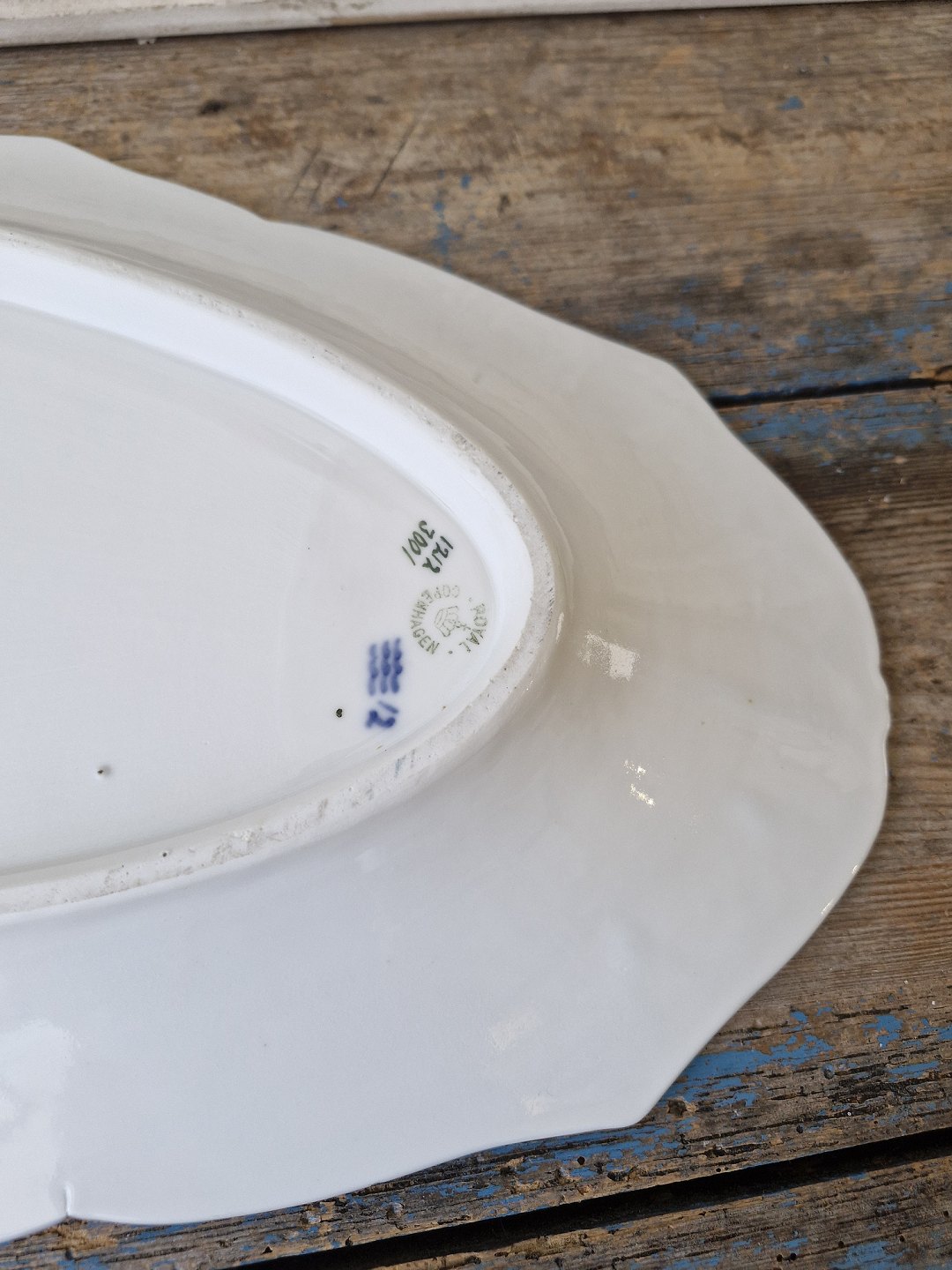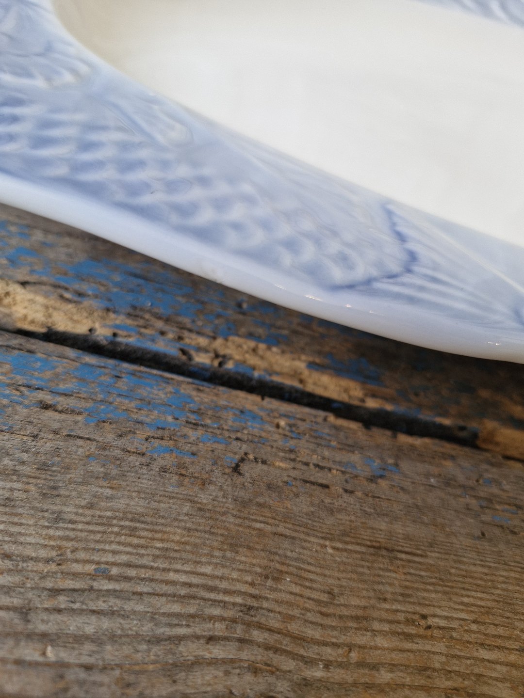 Royal Copenhagen fiskestel med blå kant fiskefad