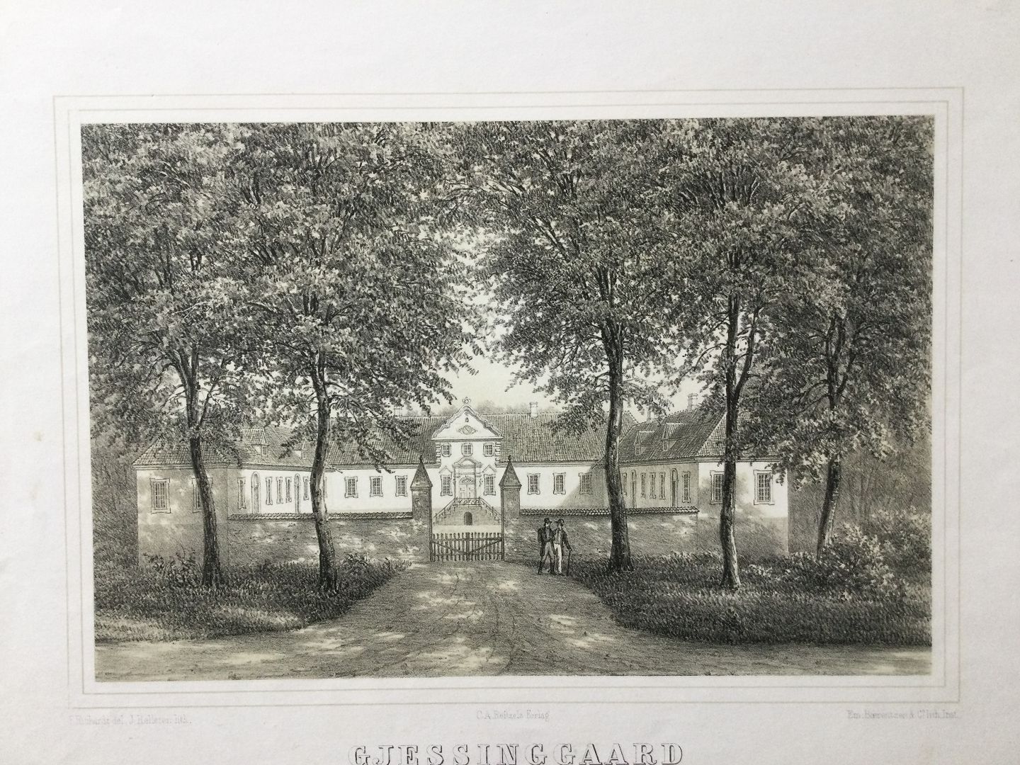 Hovedbygningen på Gjessinggaard er opført i 1747. Var i slægten von Folsach's eje 1734-1977. Ejes i dag af greve Peter Emil Bernstorff.