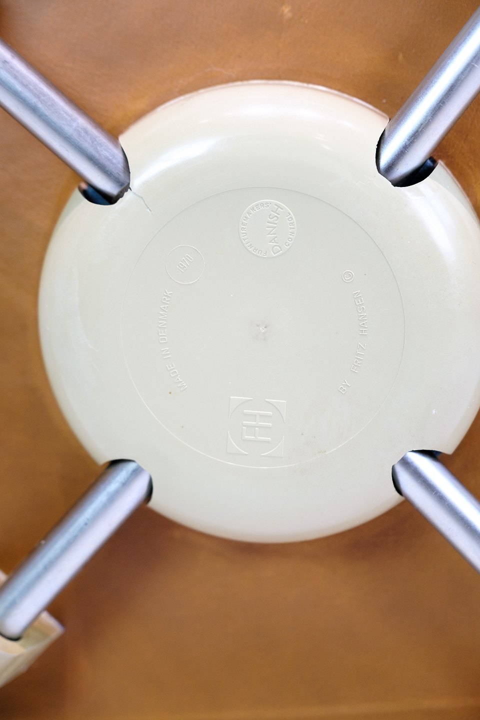 Arne Jacobsen, one of Denmark's most famous designers, is known for his innovative and timeless furniture. Fritz Hansen, who produced his designs, are known for their high quality and craftsmanship, making these chairs a lasting investment.