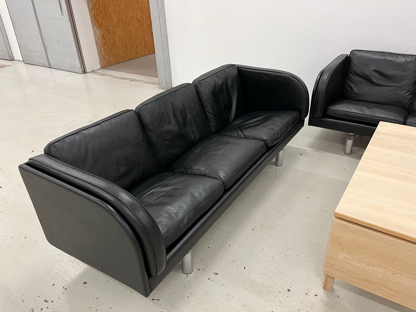 Super flotte JG 3 personers sofaer model 6523 2 stk fra Fredericia Furniture i sort Primo (Semi-anilin) læder 301 Black.Nypris 133.192,-