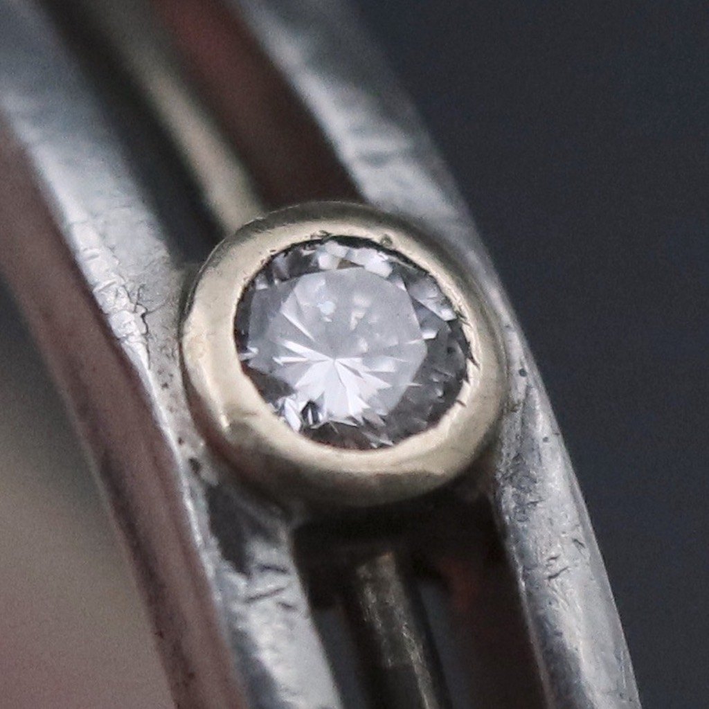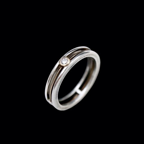 Erik Ingomar Vangsgaard. Ring i sterlingsølv med guld og brillant. 0.03ct.