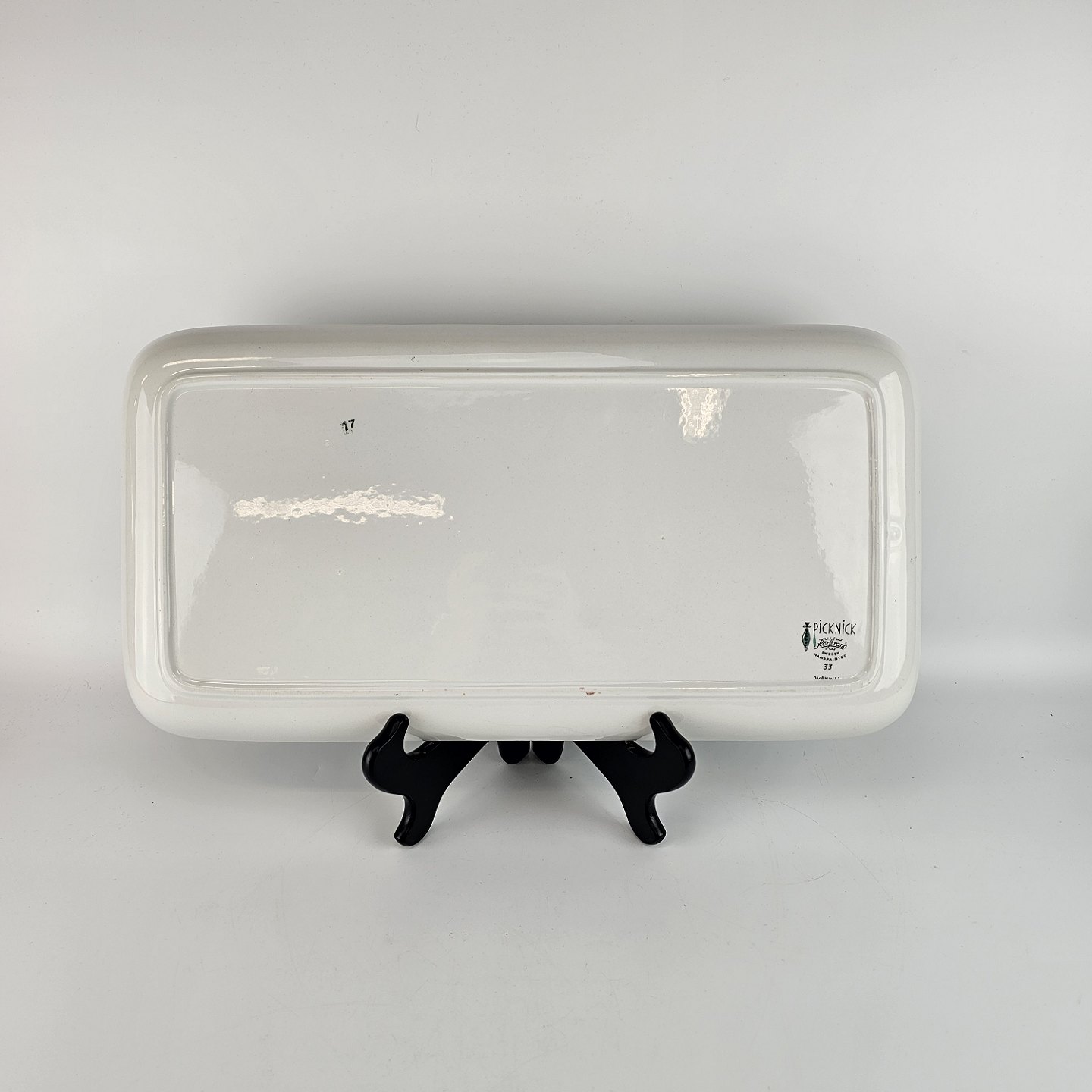 Rektangulært fad i fajance fra serien Picknick. Nr. 33