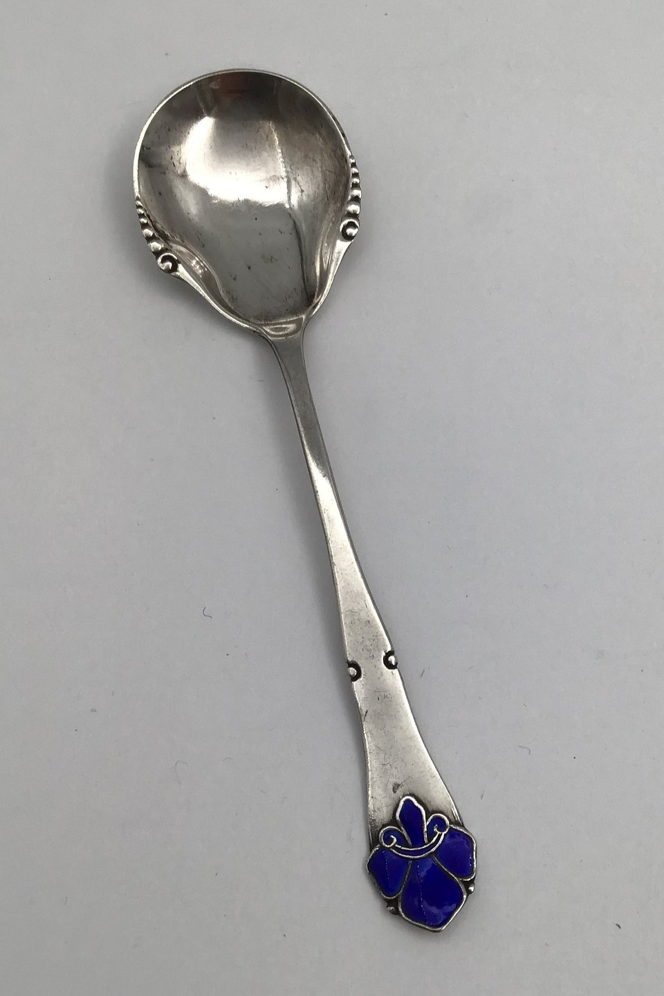 Danish Silver Fransk Lilje (French Lily) Jam Spoon (Blue Enamel)