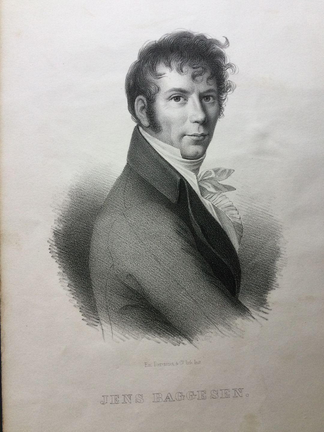 Litografi af Em. Bærentzen - Portræt af Digteren Jens Baggesen.