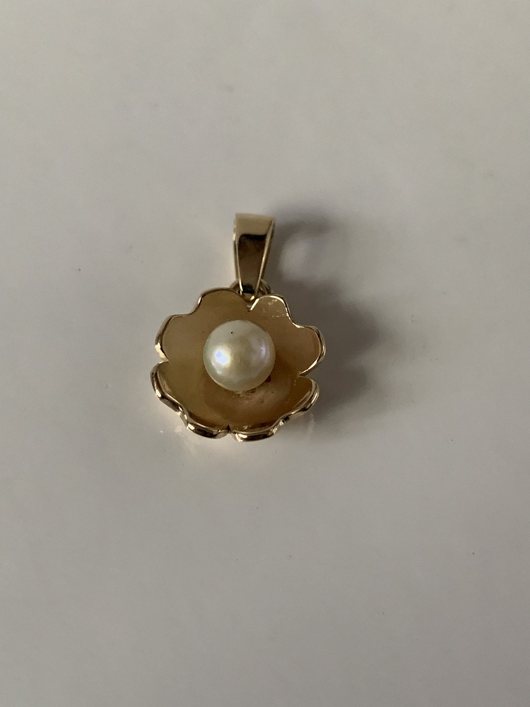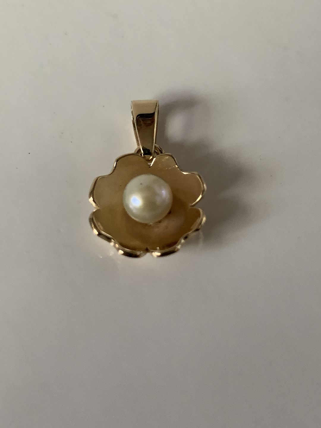 14 k guld vedhæng med en perle, stemplet KELØ 585.