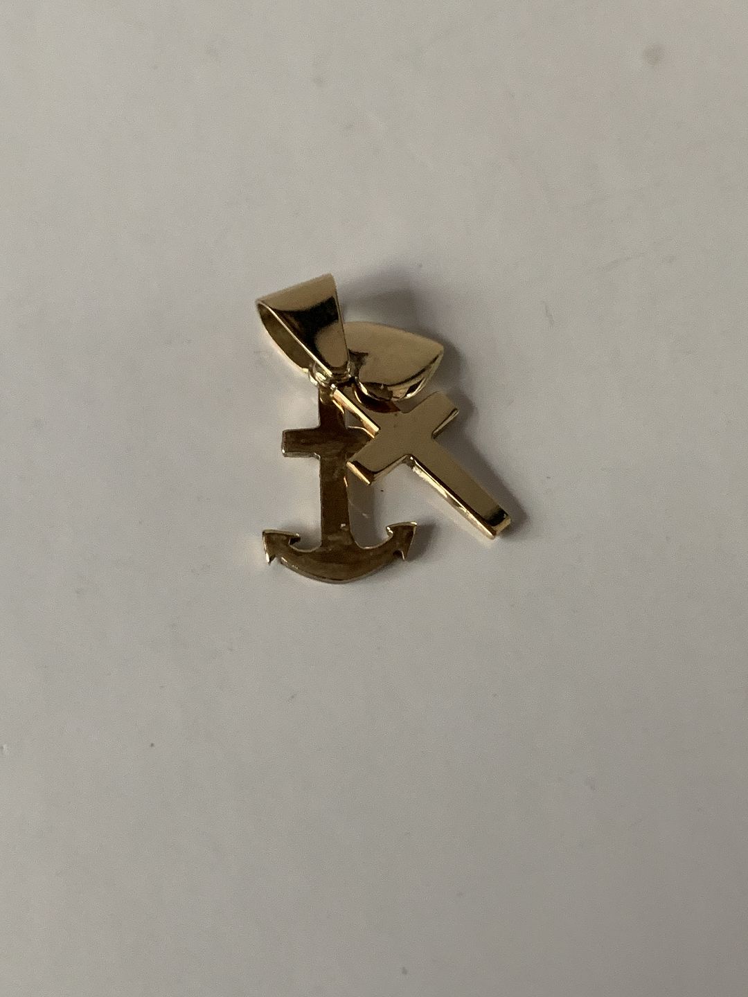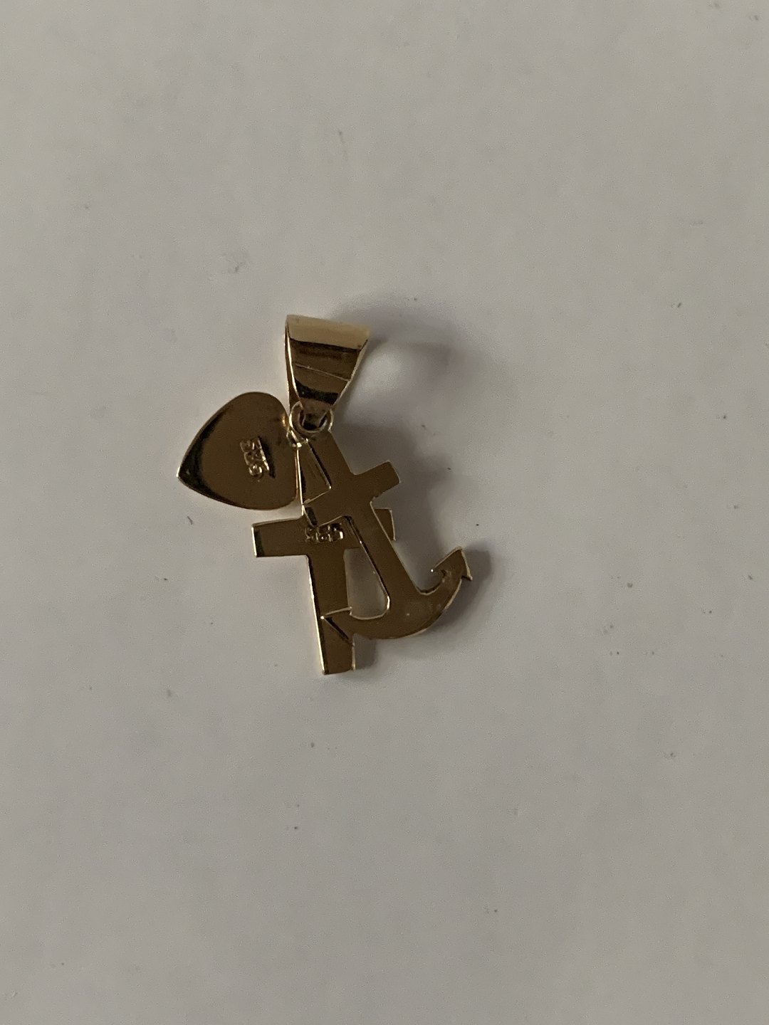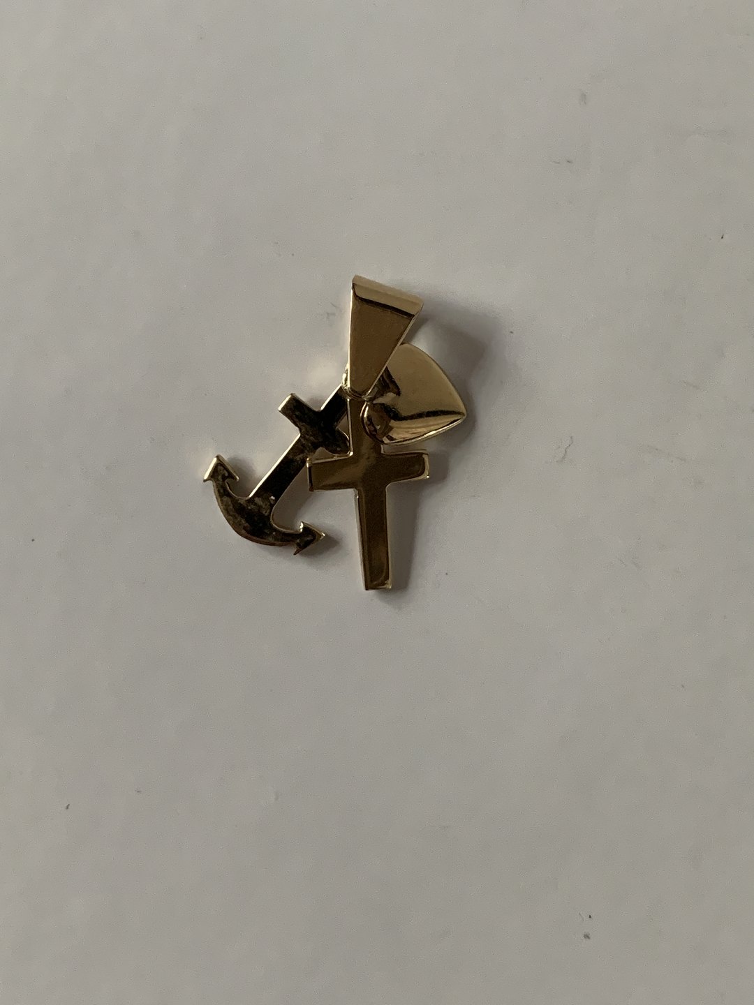 Vedhæng i 14 karat guld, med de 3 symboler for tro, håb og kærlighed. Stemplet 585.